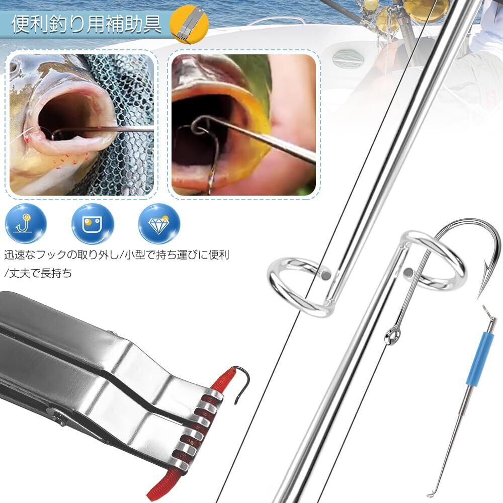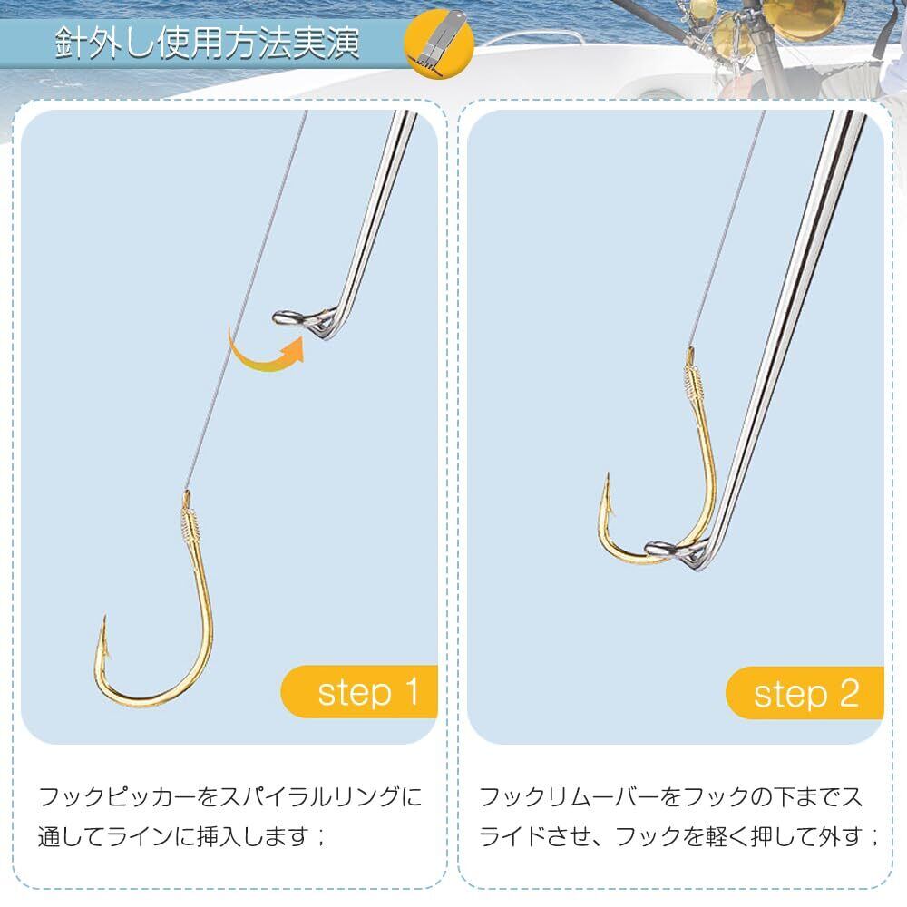 ステンレス製フックピッカー:釣り糸の周りにフック取り外しツールを持ち、釣り糸に沿って魚の口に入り、フックを見つけ、フックの下部を引っ掛け、手を怪我しないように引っ張って素早くフックを取り外すだけです。