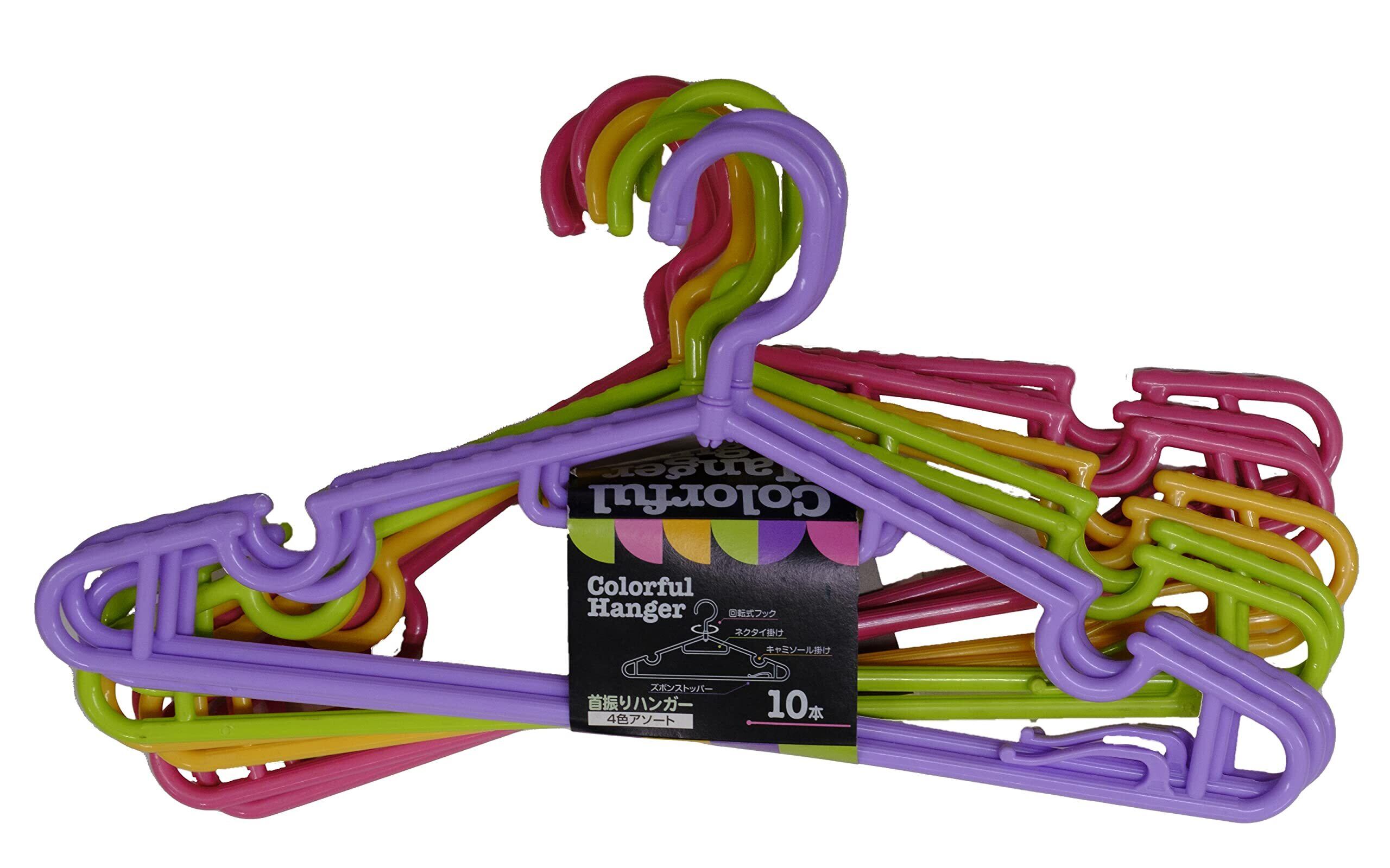 水勘製簾所 衣類ハンガー 洋服ハンガー 20本組 カラー 4色 アソート 回転式フック ネクタイ掛け キャミソール掛け ズボンストッパー付き