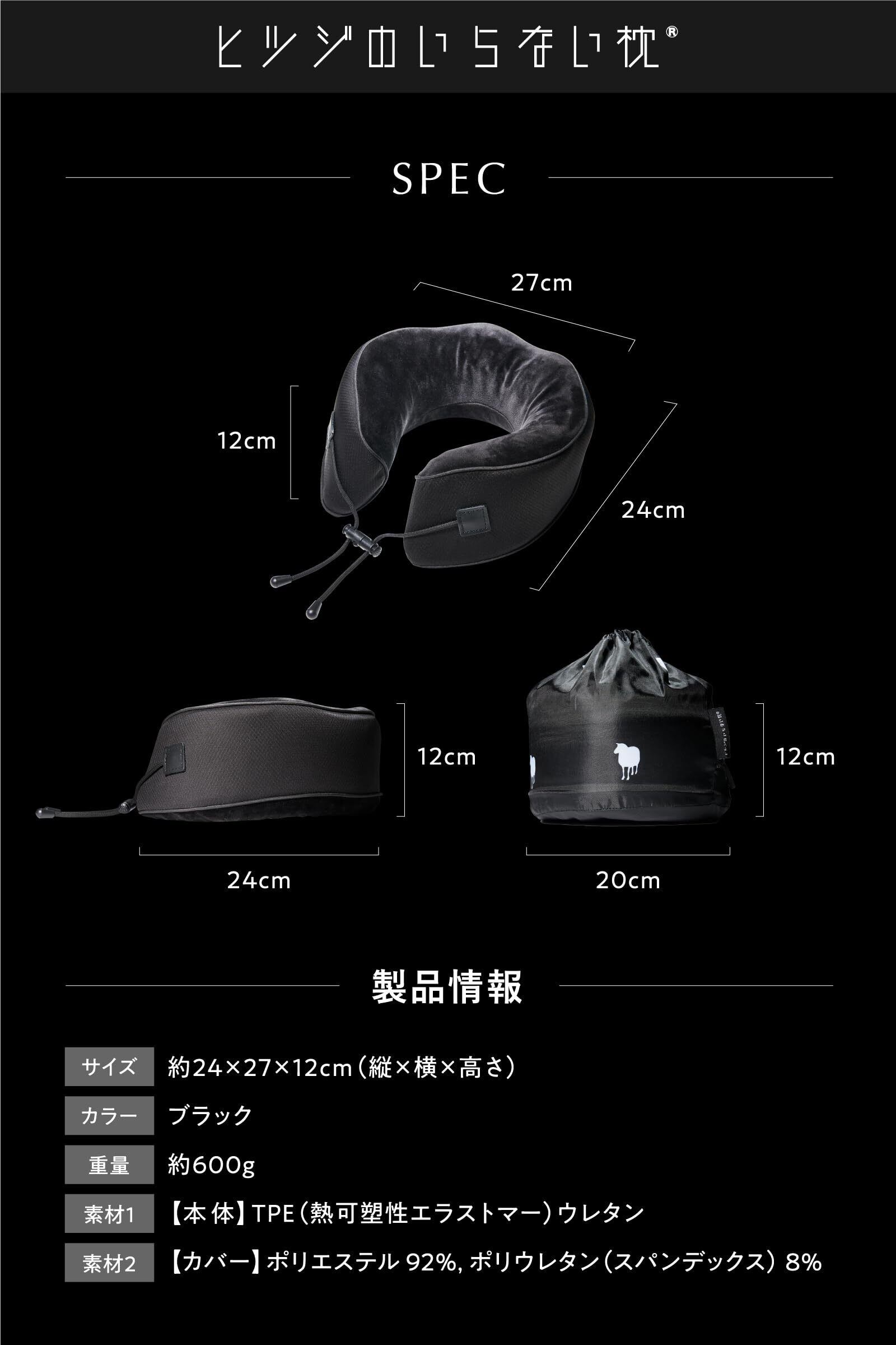 【セット内容】ネックピロー本体(カバー付き)、持ち運び用バッグ付き【商品サイズ】<展開時>約24×27×12cm(縦×横×高)<格納時>約20×20×12cm(縦×横×高)【製品重量】約600g