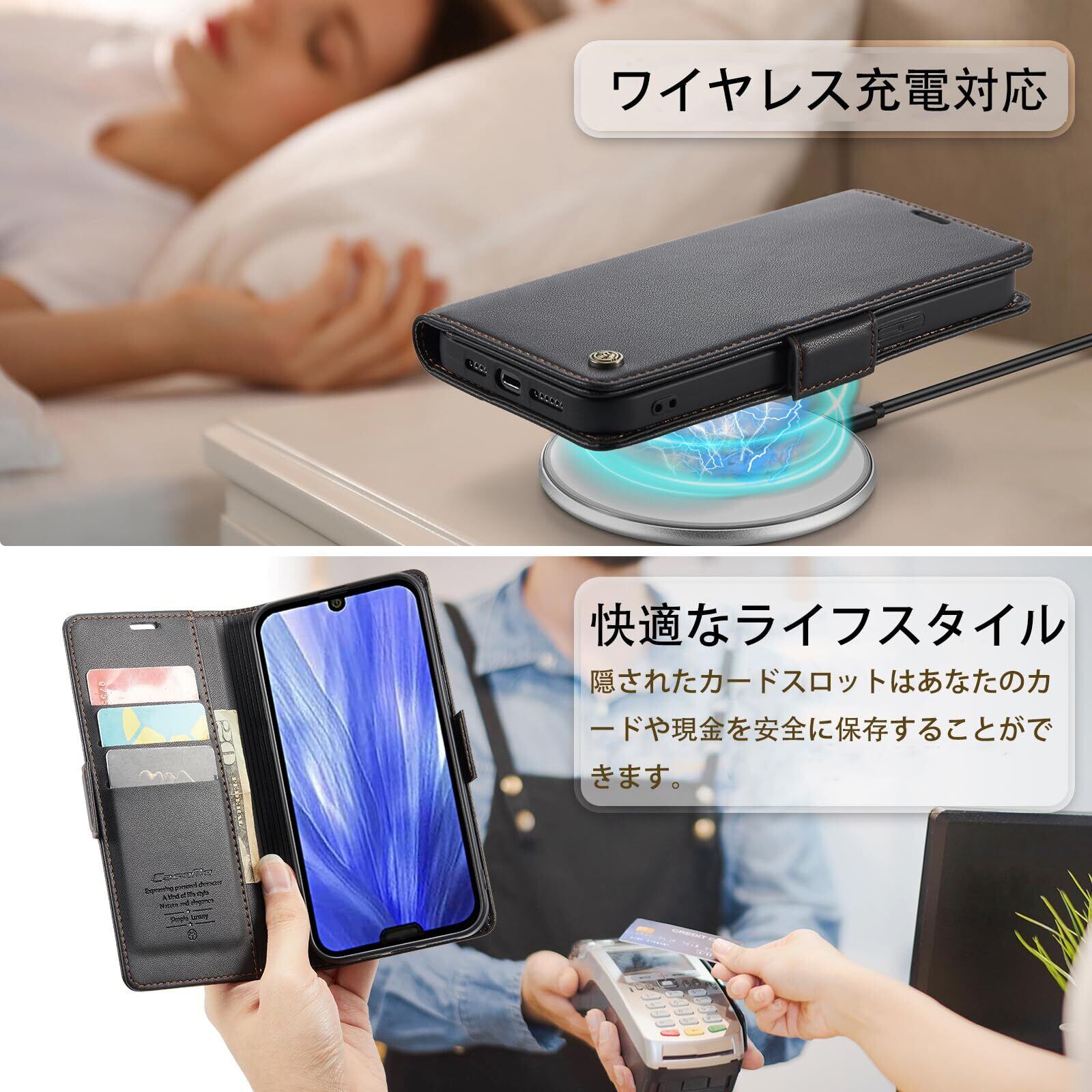 【スタンド機能】滑り止め手帳型ケース設計で、画面の支持方向を角度と高さに合わせて自由に調整できます。横置きで支えることができる携帯電話があれば、いつでもビデオやテレビを見ることができ、オフィスでの会議、料理の勉強、楽器の勉強など、あなたの生活にもっと便利さを加えることができます。