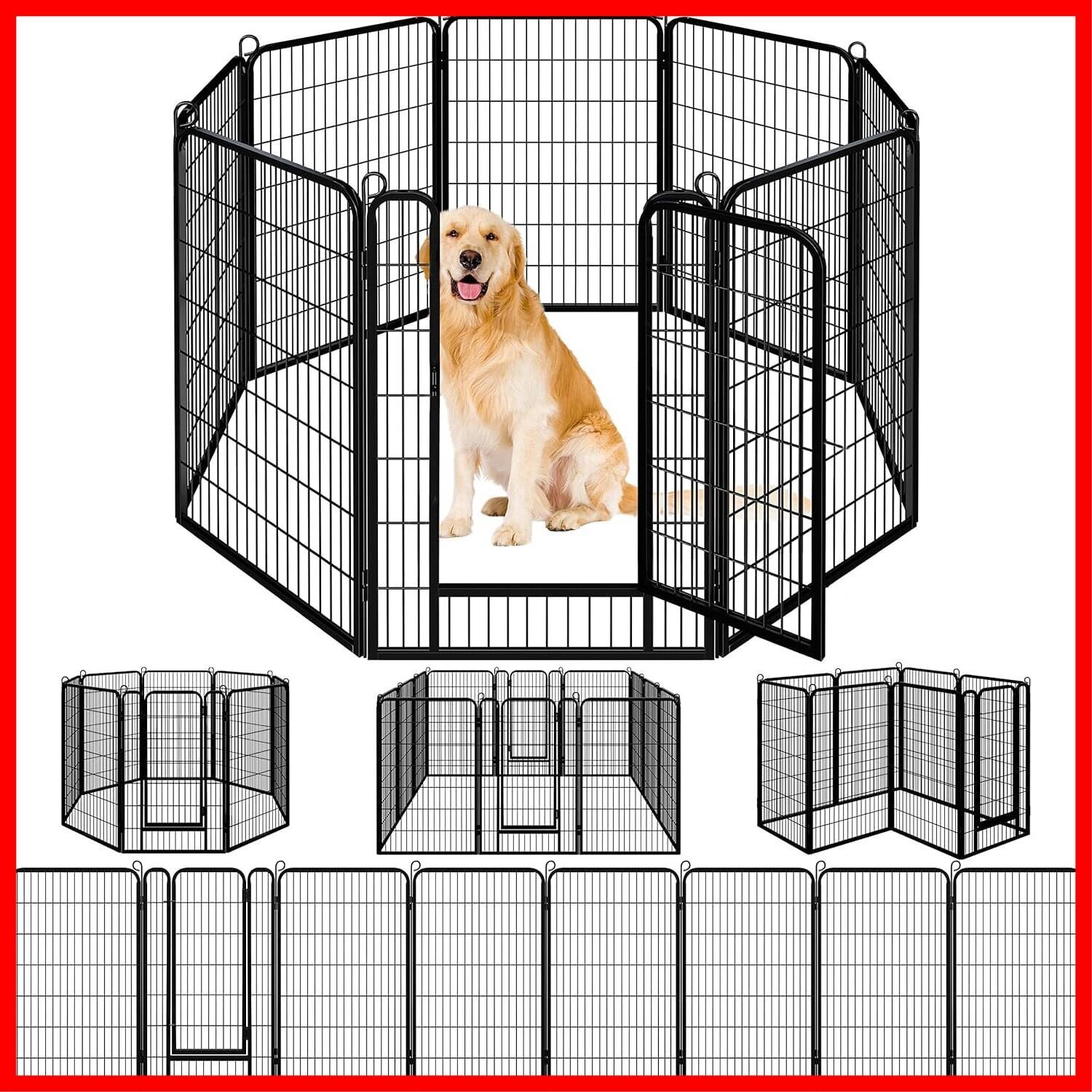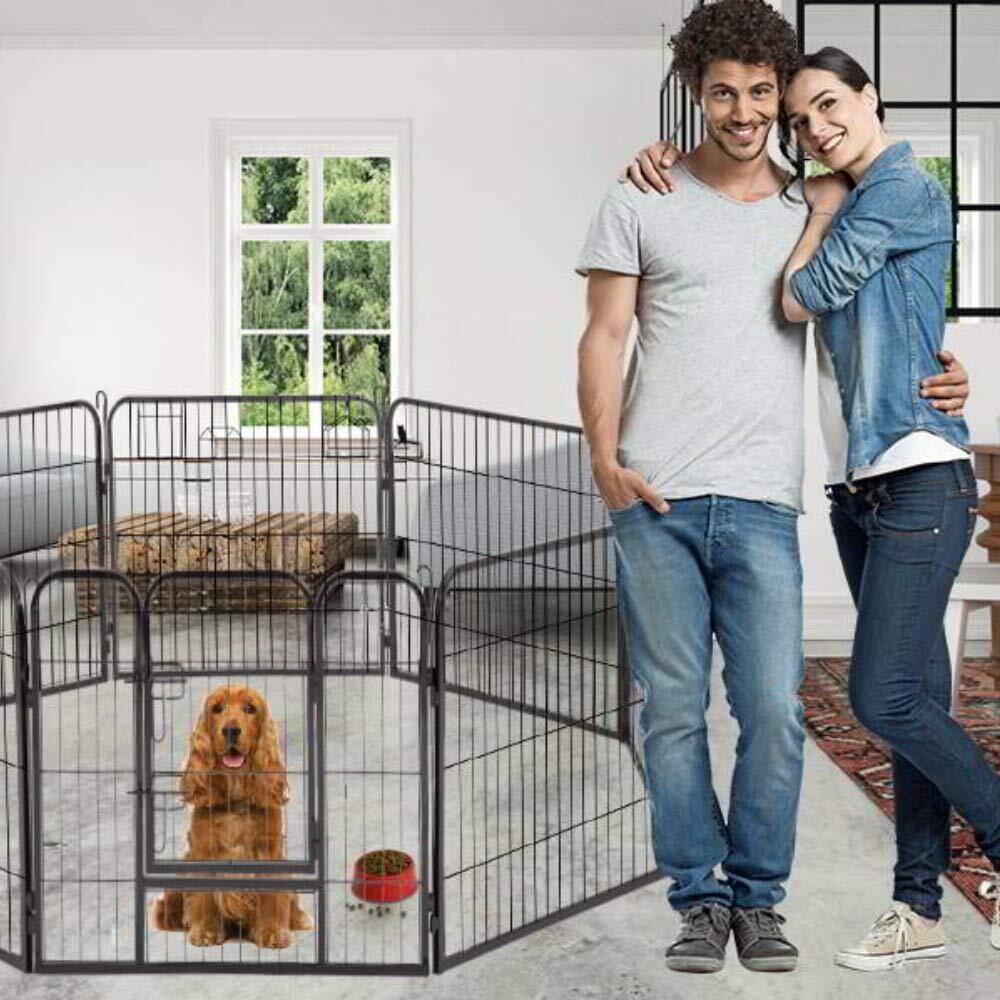 Dinah Alsop ペットフェンス 中大型犬用— ペットケージ パネル8枚 ペットサークル 四角ポール 折り畳み式 トレーニングサークル スチール製 複数の組み合わせ 室内室外兼用 犬小屋 ペット栅 (高さ100cm-8枚 ブラック) | hananoki
