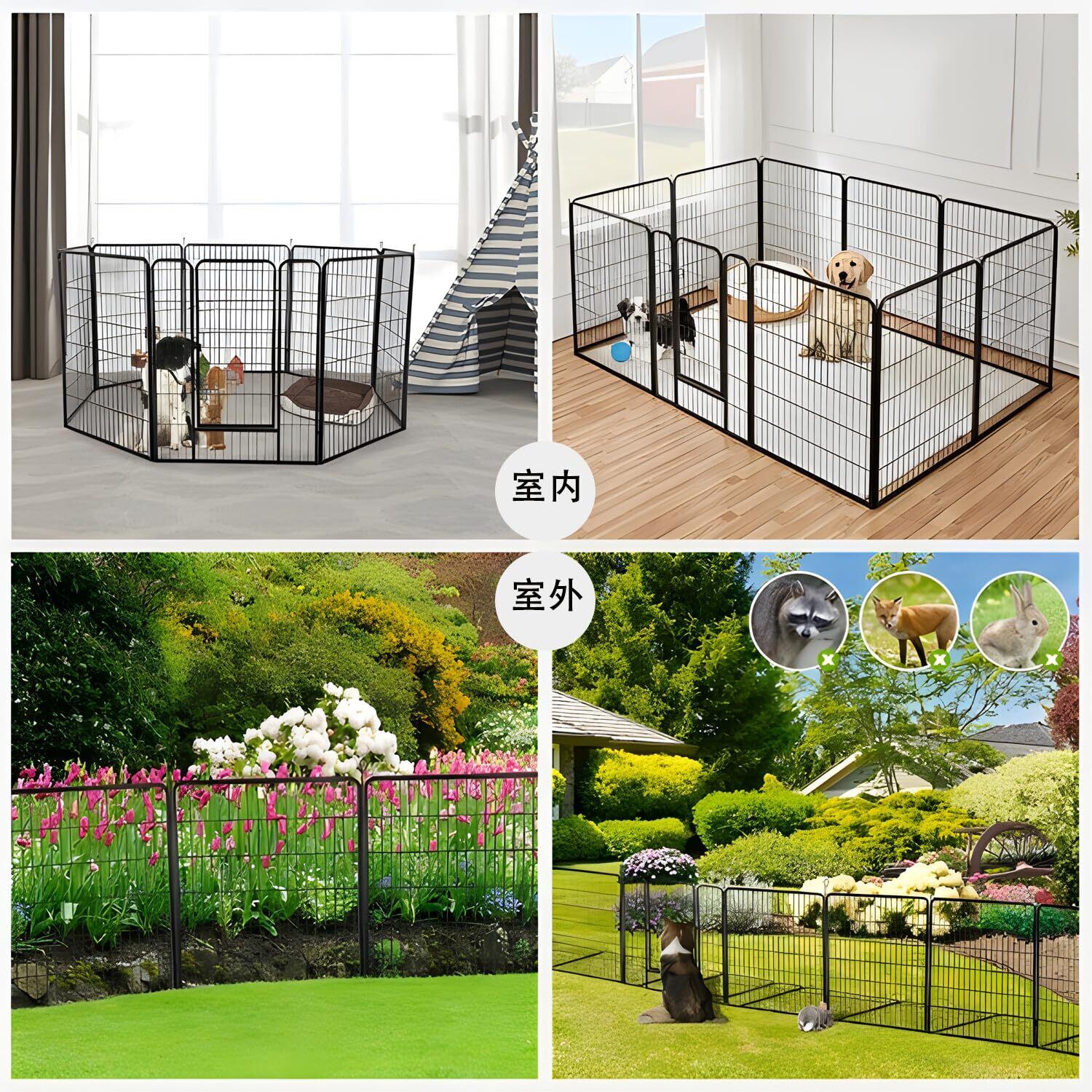 【高品質の金属材料】―ペットサークルは高品質の金属材料で作られており、錆や変形を防ぎます、長寿命と優れ。安定な構造に広い空間なので、室外・室内両方に兼用します。ペットに窮屈な思いをさせる事なく、日常のトイレ訓練やハウストレーニングに便利なペットサークルです。サイズ:長方型:幅234x奥行78x高さ100cm、正方型:154x154x高さ100cm、八角型:直径200cmx高さ100cm