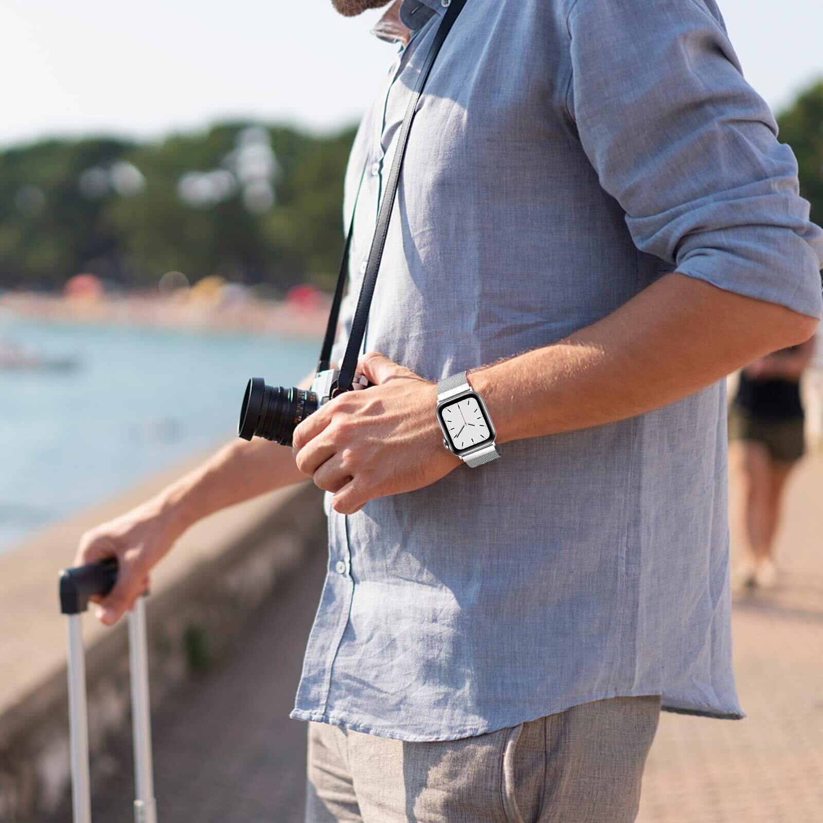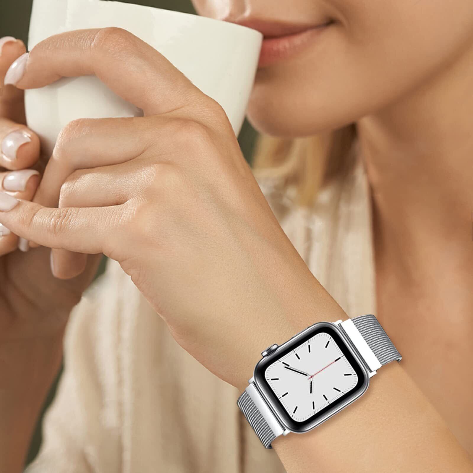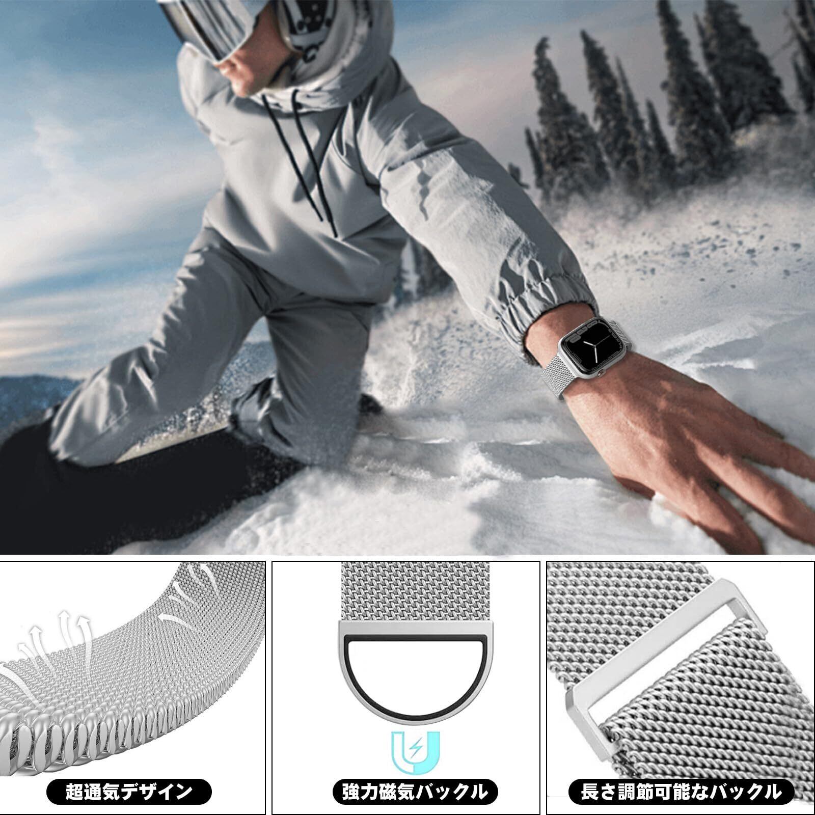 CAERMA コンパチブル アップルウォッチ バンド 38mm 40mm 41mm 42mm 44mm 45mm 46mm 49mm コンパチブル Apple Watch バンド ステンレス留め金製 男女兼用 長さ調節 強力な磁 通気 メッシュ ベルト コンパチブル Apple Watch Series 10/9/8/7/6/5/4/3/2/1/SE/Ultra 対応(49/46/45/44/42mm(Series 3), シルバー) | hananoki
