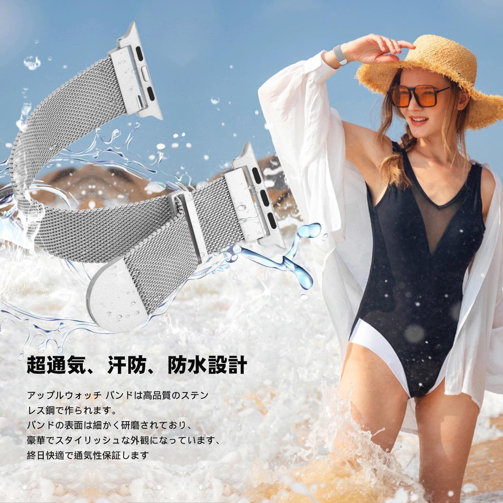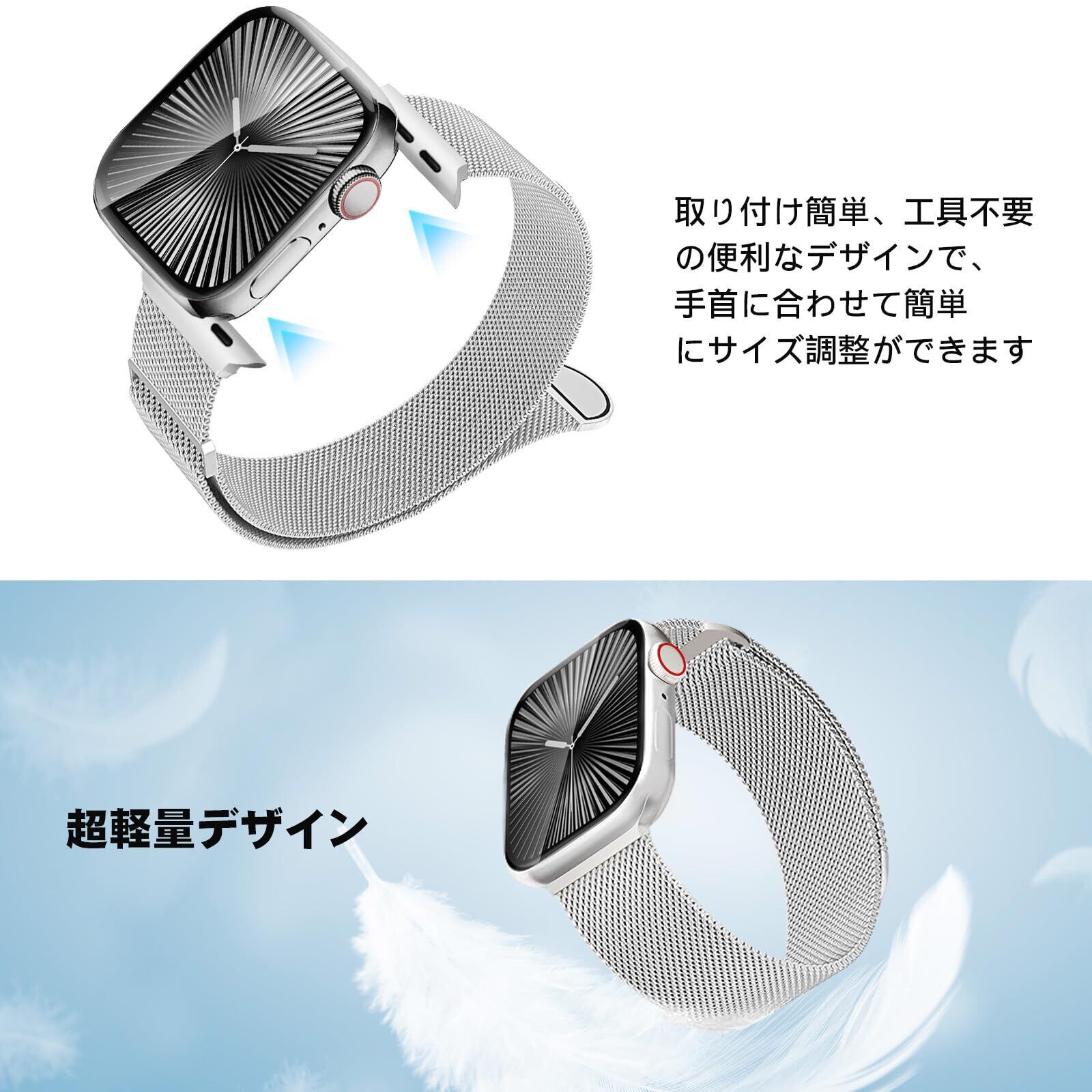 【優れた防水性&通気性】高品質のステンレス鋼で構成したアップルウォッチ バンド、さまざまな複雑なプロセスを経て最終的に研磨されて、安定したメッシュ構造になります。 メッシュタイプなアップルウォッチバンドは柔らかくて軽量で、衛生的で錆びにくい、耐久性があり、通気性や防水性も優れて快適です。