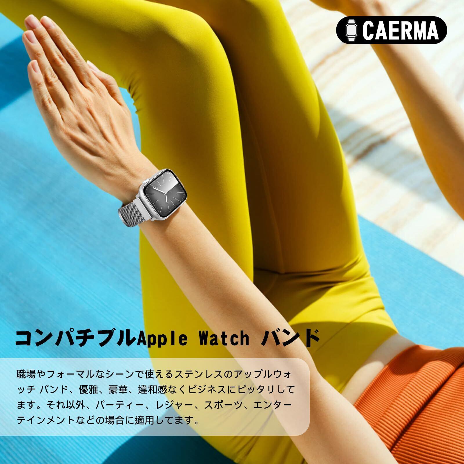 【対応機種】CAERMA コンパチブル Apple Watch Series 10/9/8/7/6/5/4/3/2/1/SE2/SE/Ultra2/Ultra。対応 アップルウォッチ バンド 49mm/45mm/44mm/42mm/(46mm 2024 Series10) の手首周り:155mm〜230mm (6.1"〜9.06") に適しています。男女兼用ビジネス風設計、複数のシーンに対応できるApple Watchバンドです。