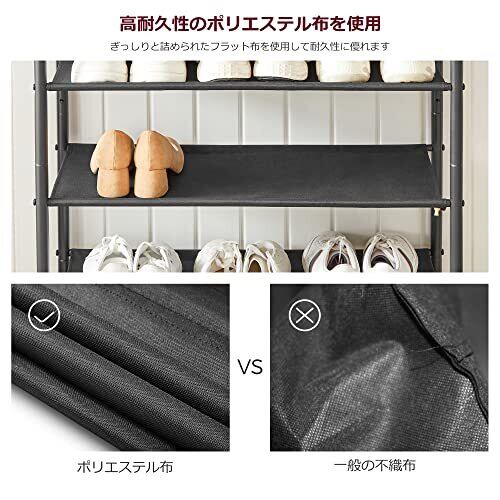 【良い素材を使用・通気性が良く】 高耐久性のポリエステル布を使用してオープンタイプのシューズラックは一般の不織布より通気性と耐久性に優れいます。普段のお手入れも簡単になります。シューズラック底部は床からも約8.5cm離れているので、湿気やホコリ等がつきにくく、下部にも靴の収納に使えます。