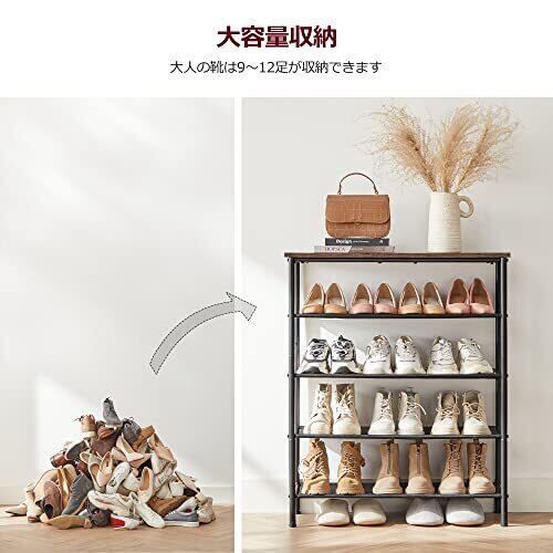 VASAGLE シューズラック 下駄箱 靴 収納 スリム 靴箱 省スペース 靴置き 靴収納 靴収納ラック おしゃれ 5段 大容量 木製 玄関収納 奥行30㎝ 高さ91cm ヴィンテージ 玄関 棚 通気性 ポリエステル布 LBS036B01 | hananoki
