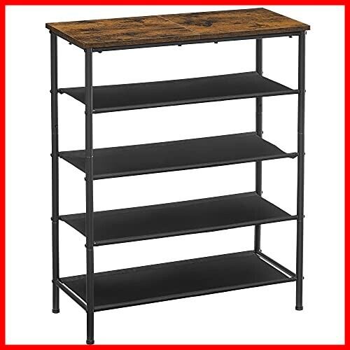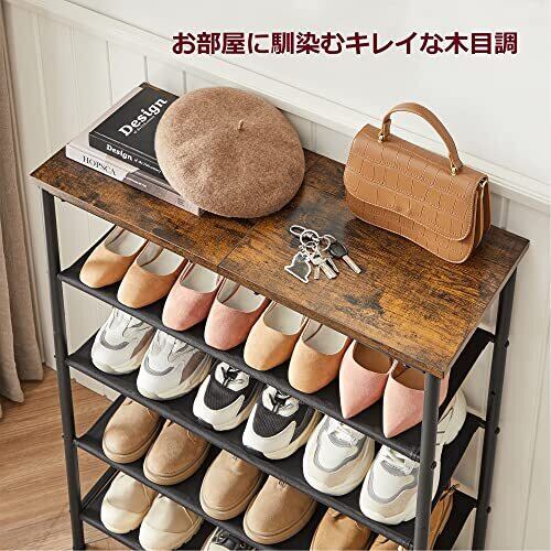 VASAGLE シューズラック 下駄箱 靴 収納 スリム 靴箱 省スペース 靴置き 靴収納 靴収納ラック おしゃれ 5段 大容量 木製 玄関収納 奥行30㎝ 高さ91cm ヴィンテージ 玄関 棚 通気性 ポリエステル布 LBS036B01