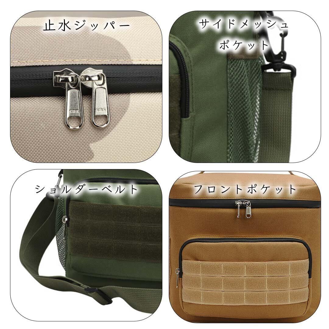 【機能的クーラーバッグ】 手持ち/肩掛け/斜め掛け3WAYできるので便利、手が自由になり快適です。ショルダーベルト付きで長さ調節可能で、手提げ用の持ち手も付いているため、持ちやすくて身体に負担をかけずに移動も楽々です。メイン収納部分は330ml×24本収納可能。両サイドとフロントにはポケットが備わっており、食器、ティッシュを収納するのにぴったりです