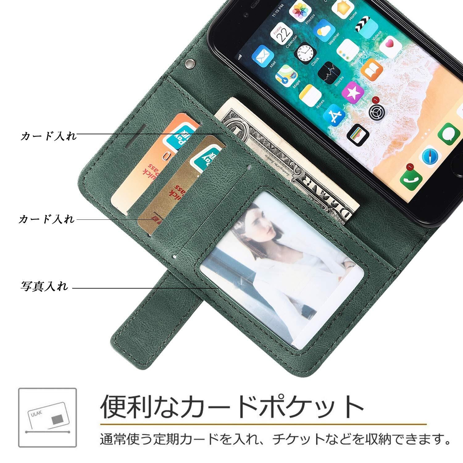 【高品質素材】プレミアムPUレザーを採用されフレーム,柔らかくもちもちとした肌触りが特徴で弾力性·柔軟性が高くて,本革に近い見た目と質感があります。環境に優しい柔らかいTPUを採用されカーバ,協力強いゴムのような強さがあるので,落下などの衝撃も吸収し,傷にも強いので,スマホ本体を守ってくれます。