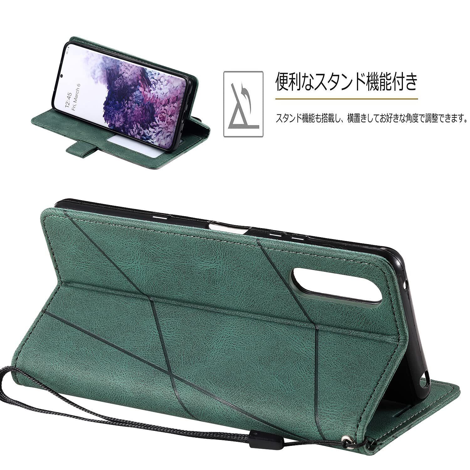 UnivoColors Sony Xperia 5(SO-01M/SOV41)手帳型ケース カード収納 スタンド機能 サイドマグネット TPUケース 軽量 ストラップ付き QI充電対応 横置き機能 防指紋 レンズ保護 全面保護 (グリーン) | hananoki