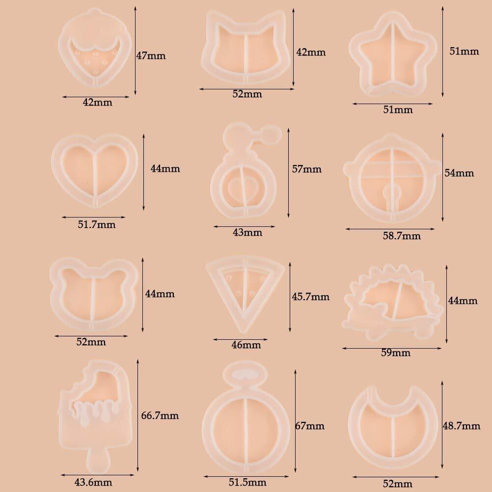 TIMESETL 12個セット レジン シリコンモールド 流れ砂型 レジン型 猫 鈴 月 星などモールド かわいい