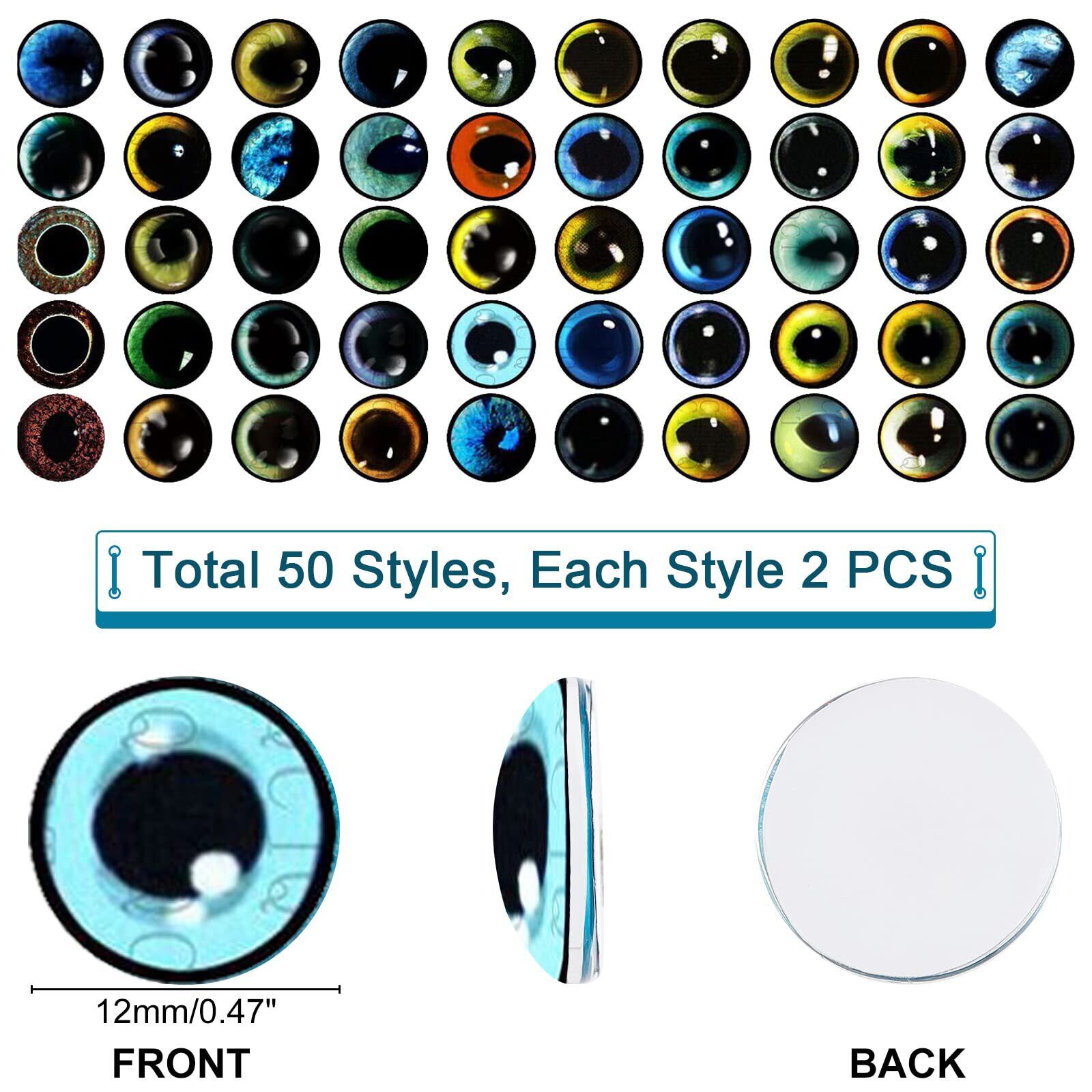 50スタイル:各スタイル2個ずつ、飾る目を探す心配はありません。邪眼ガラスカボションは合計100個、直径約12mmです。