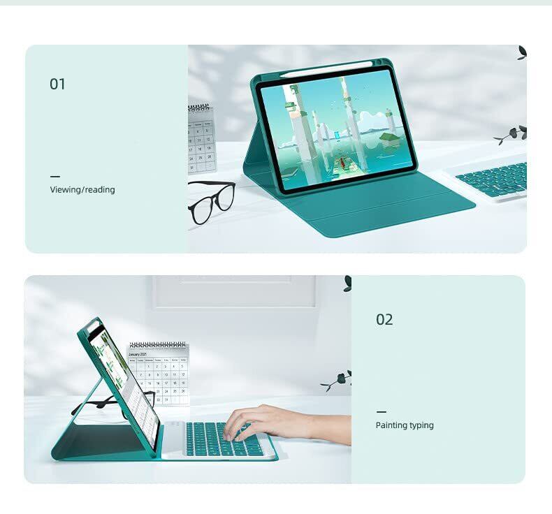 ペンシル収納可能:iPadケースの上部にペン収納スペースあり、ペンの取り出しも易くて使い勝手がよい。カラーバリエーション豊富、持ち運び便利、ビジネスや学生たちにお勧めの可愛いキーボードケースマウスセットです。