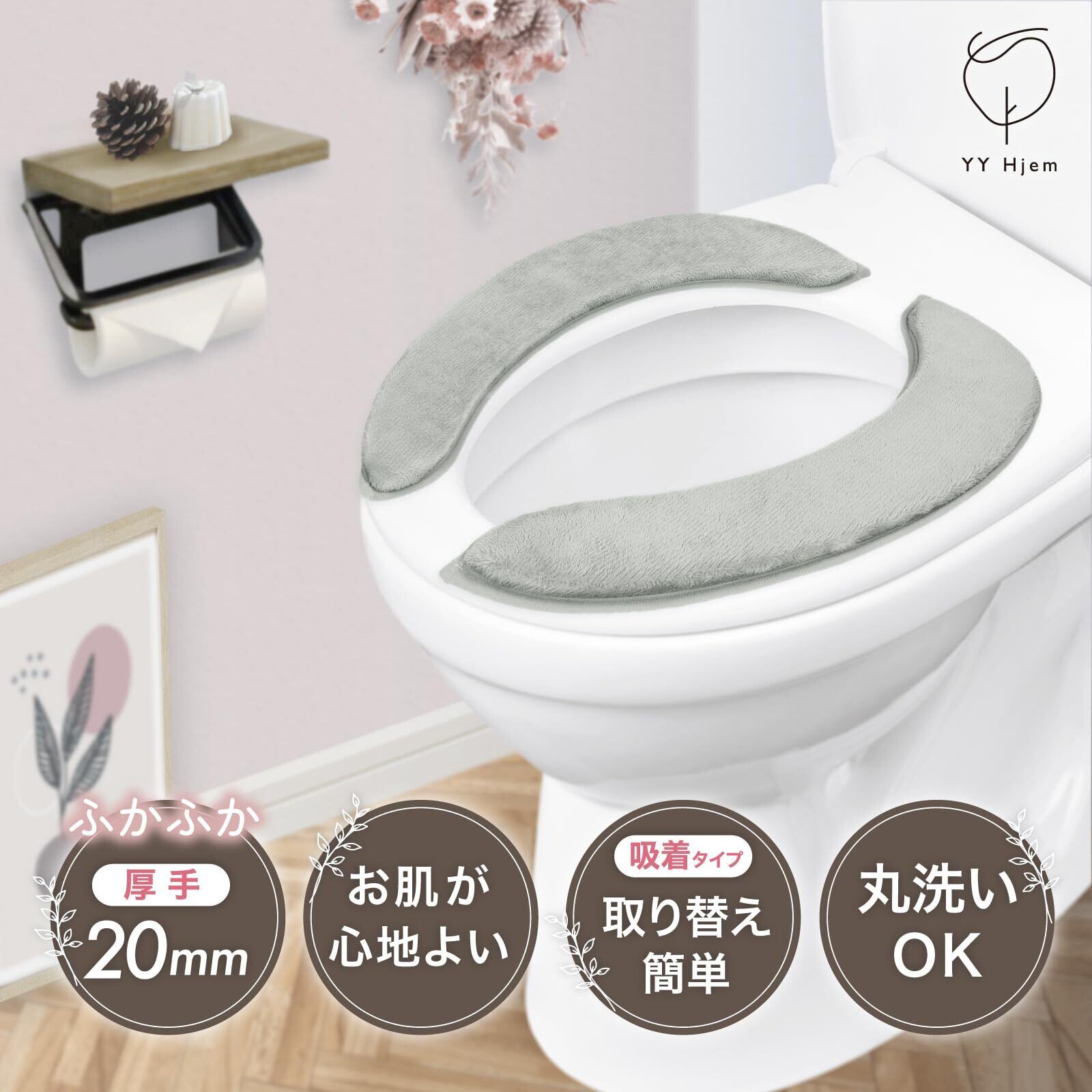 YY Hjem 便座シート 便座カバー 【2組】 20mm 座って快適/毛玉レス/瞬間脱着 & 簡単お手入れ (ライトグレー/ロングタイプ)
