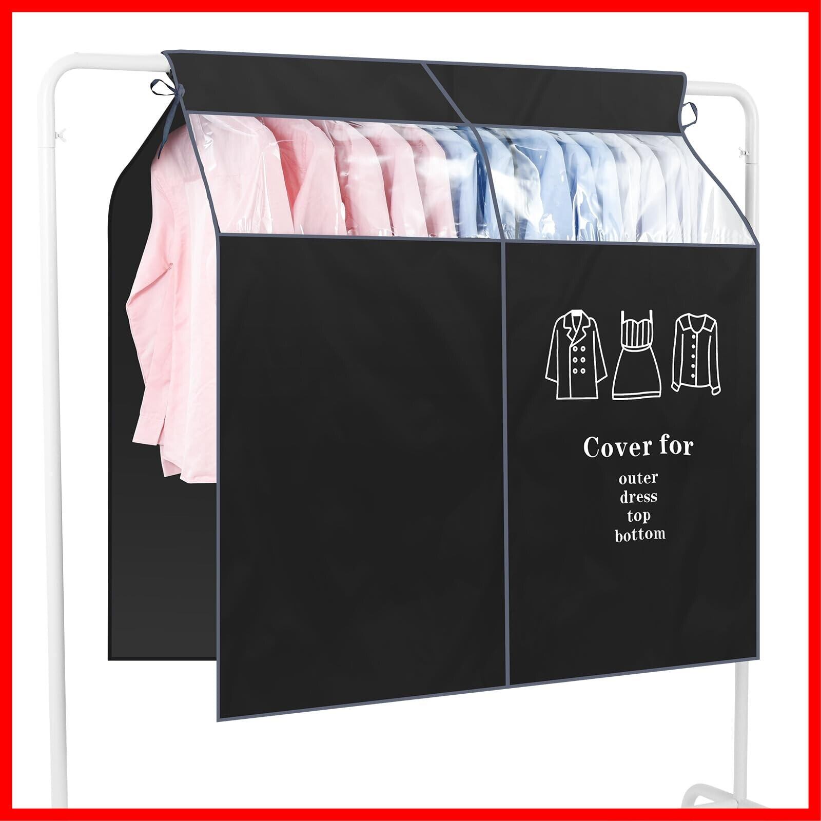 【ズレ防止】左右の両サイドに紐があり、どんな棚やハンガーラックに対しても十分の長さでそこに固定出来ます。両端のひもを結ぶだけで楽々です。カバーのズレを防止できます。