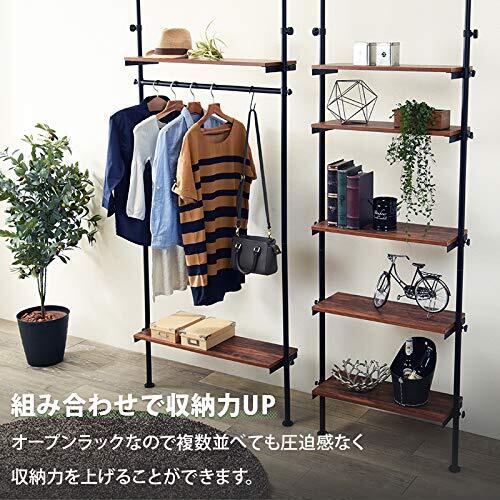 高さ無段階調整可能な木目調の棚でスッキリ収納できる、つっぱり5段ラック。
