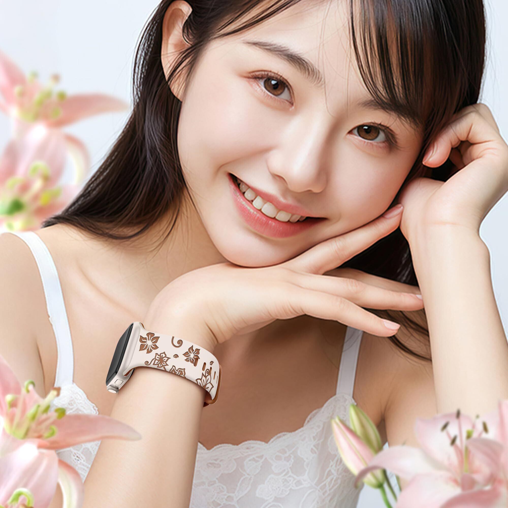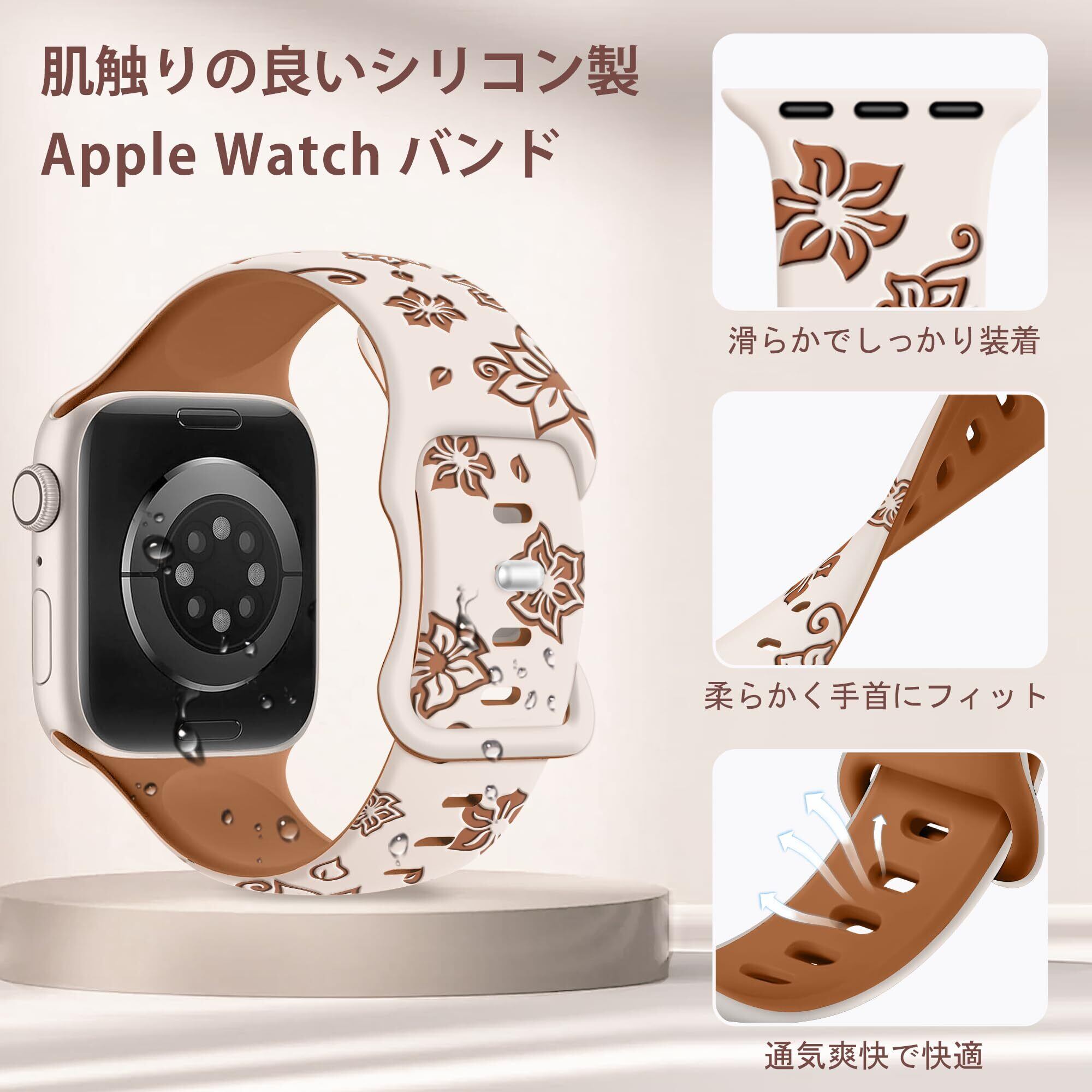 [Bokoios] 肌に優しいシリコン互换アップルウォッチ バンド レディース 46mm 45mm 44mm 42mm 49mm スポーツコンパチブルApple Watch バンド 人気互换 蒸れないアップルウォッチ ベルト 調整簡単コンパチブルApple Watch 10 ベルト iWatch Series 10 SE 9 8 7 6 5 4 3 Ultra-スターライト | hananoki