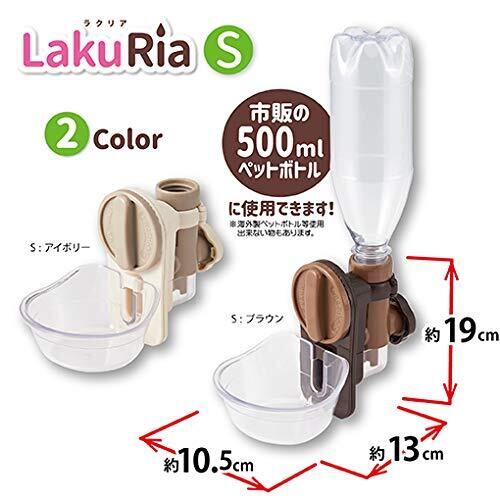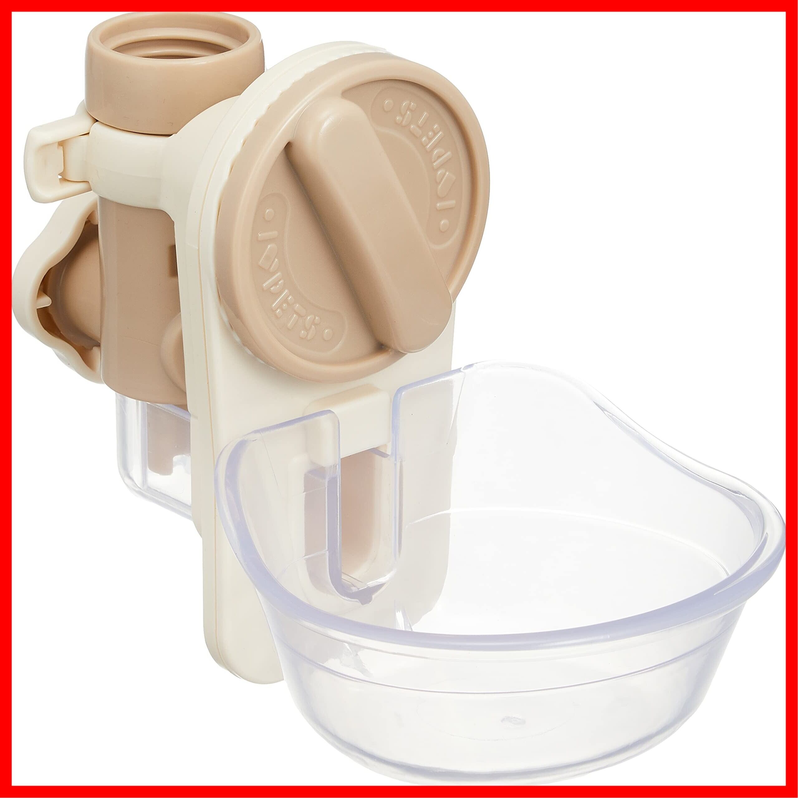 らくらく飲めて、らくらく洗えるケージ取り付け式給水器です。たっぷり飲める幅広皿で、透明で中が見えやすく、お皿だけ外してサッと洗うことができます。市販の500mlペットボトルが使用できます。漏れにくい止水コック付きで安心です。