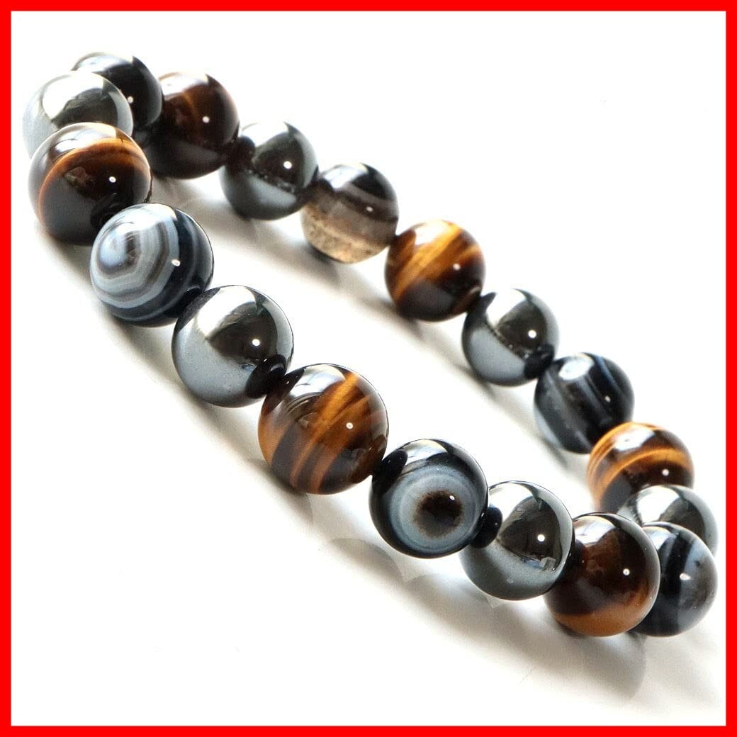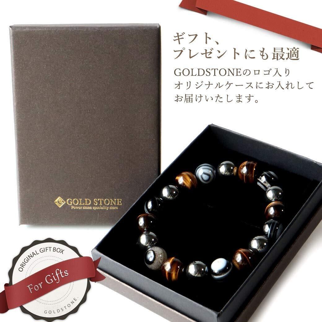 [GOLD STONE] 天眼石 タイガーアイ ヘマタイト ブレスレット 12mm パワーストーン 天然石 数珠 メンズ アクセサリー 内周 約17cm