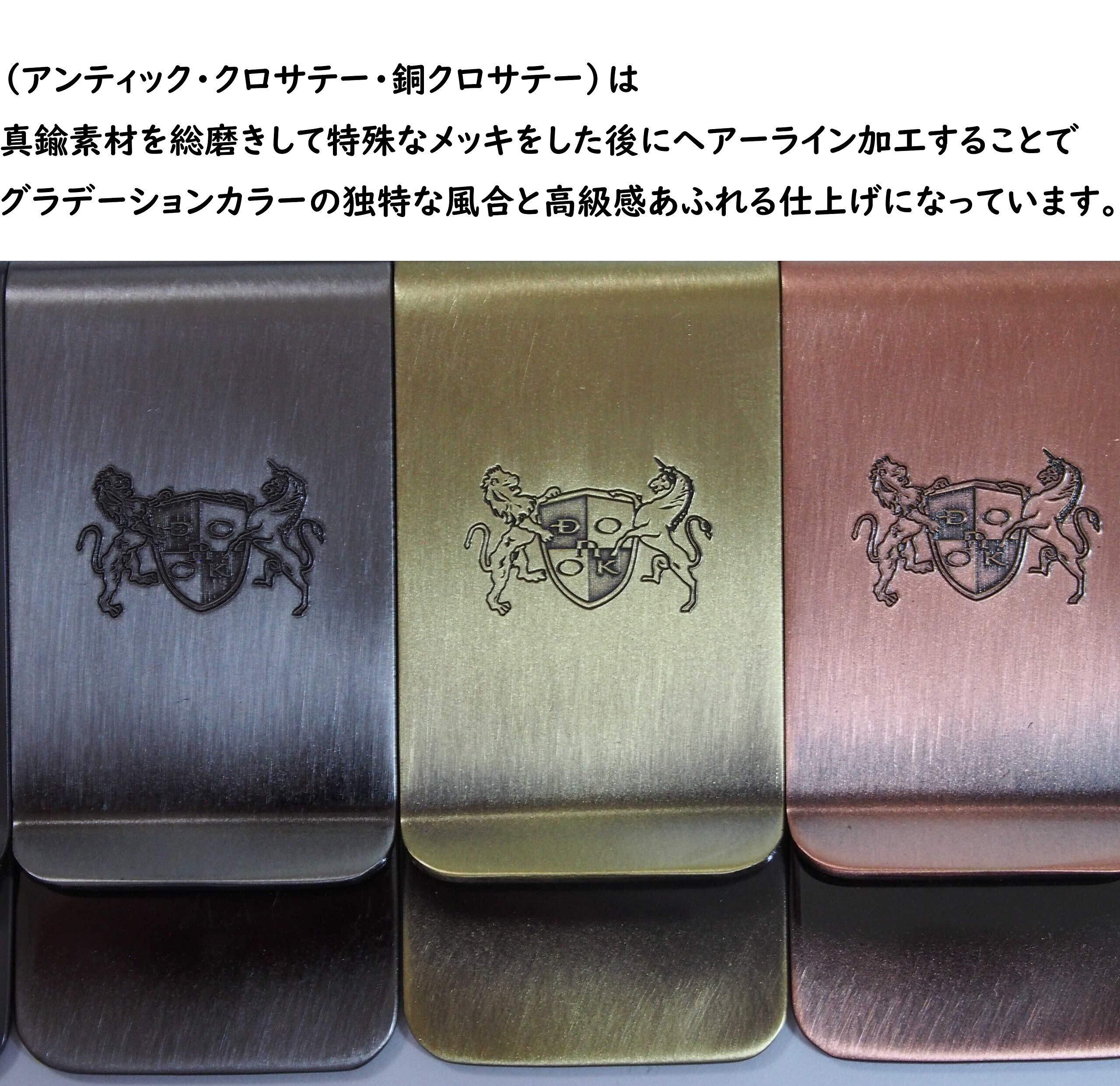 製造工程:すべて熟練の職人による手作業による制作。真鍮素材を総磨きして特殊なメッキをした後にヘアーライン加工することでグラデーションカラーの独特な風合と高級感あふれる仕上げになっています。(アンティック・クロサテー・銅クロサテー)