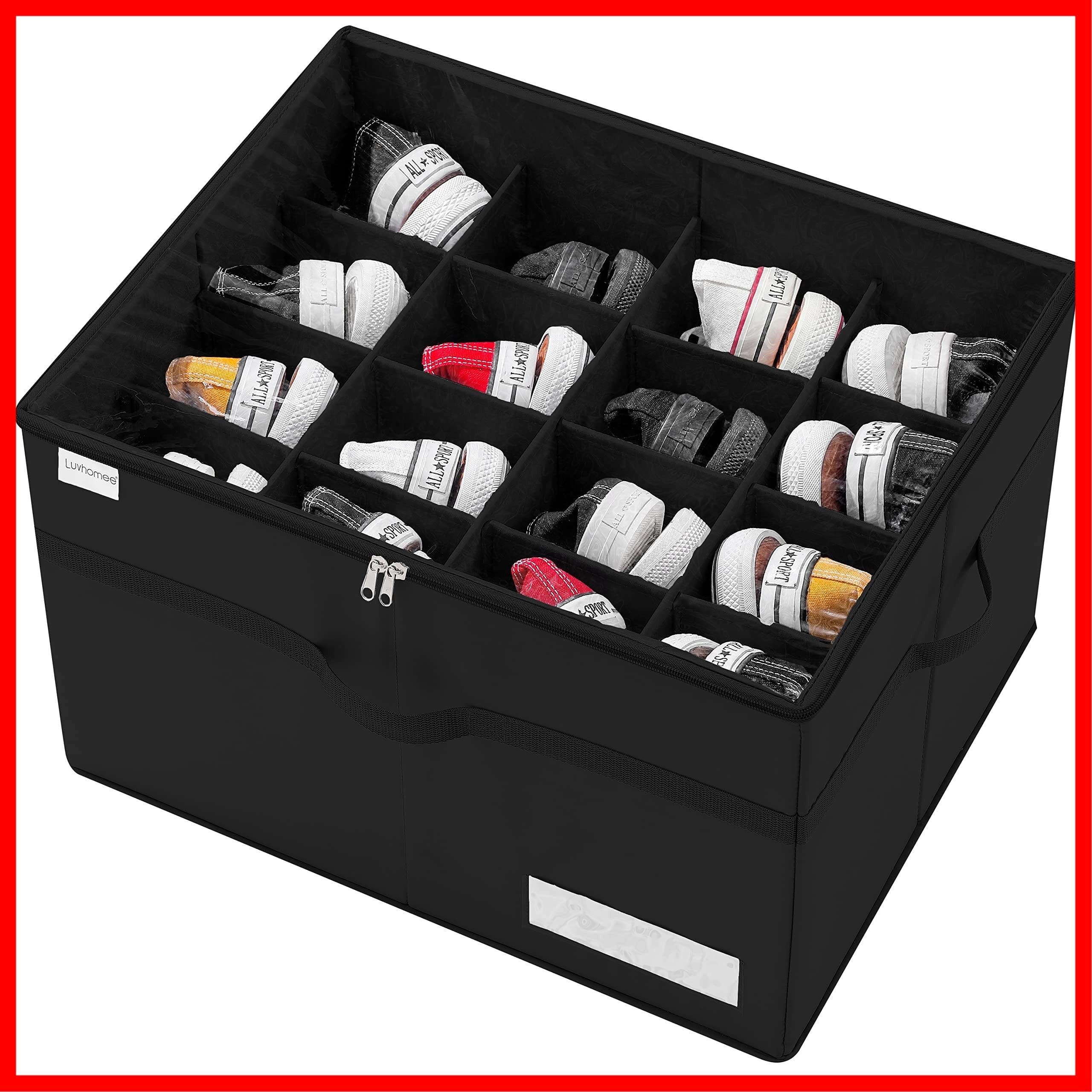 Luvhomee 靴 収納 シューズケース シューズ スニーカーボックス 靴箱 蓋付き収納ボックス 靴 箱 棚 収納 ケース 大容量 靴置き シューズラック 省スペース 16組に対応 折りたたみ 取っ手 透明窓付き ブラック