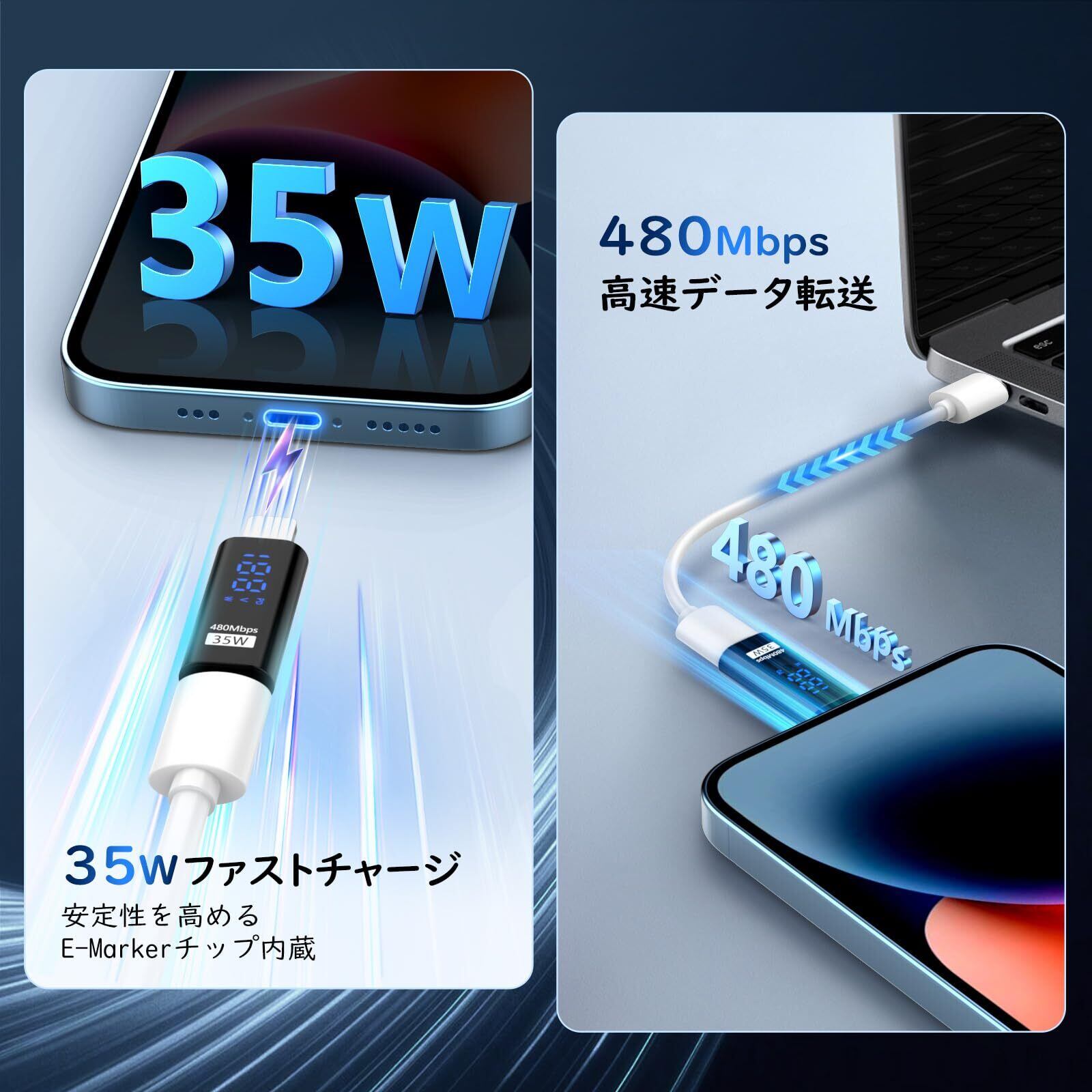 「機種端末を幅広く対応」iPhone 14/13/12/11 Pro Max/iPad/iPod/AirPodsなどライトニングコネクタ搭載のアップル端末に対応端子が異っても繋げるように大活躍してくれます。35W通常スピード(DC20V/1.75A)充電もサポートしており、480Mbpsでデータ転送対応しくれて、様々なスマートライフシーンにご活用いただけます。