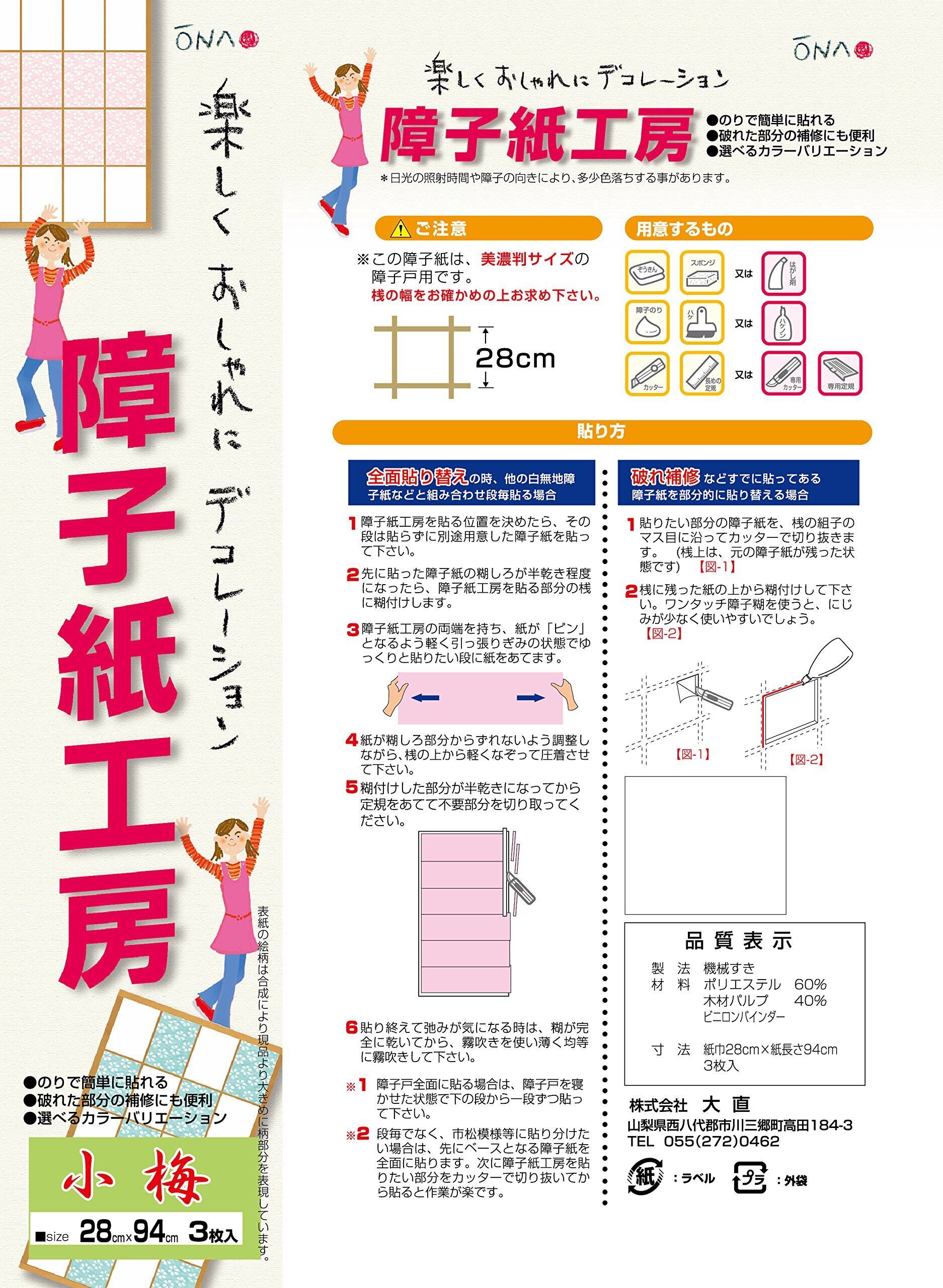 大直 補修用障子紙 28cm×94cm(3枚入り) 美濃判 障子紙工房 小梅 白 KK-01