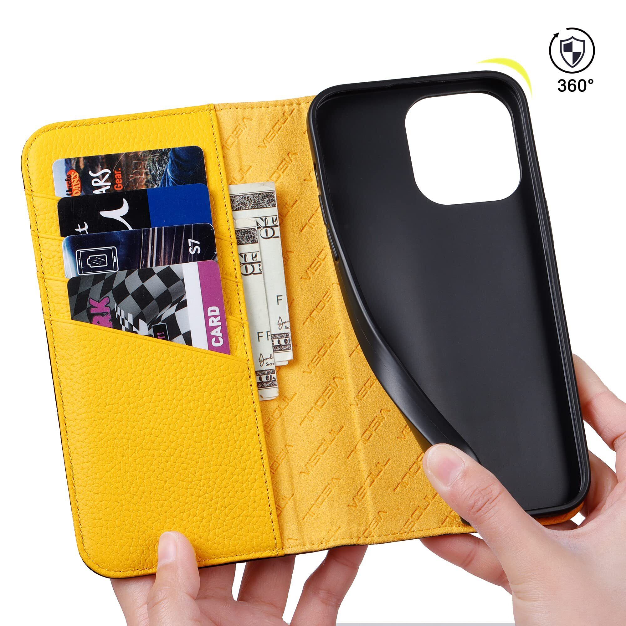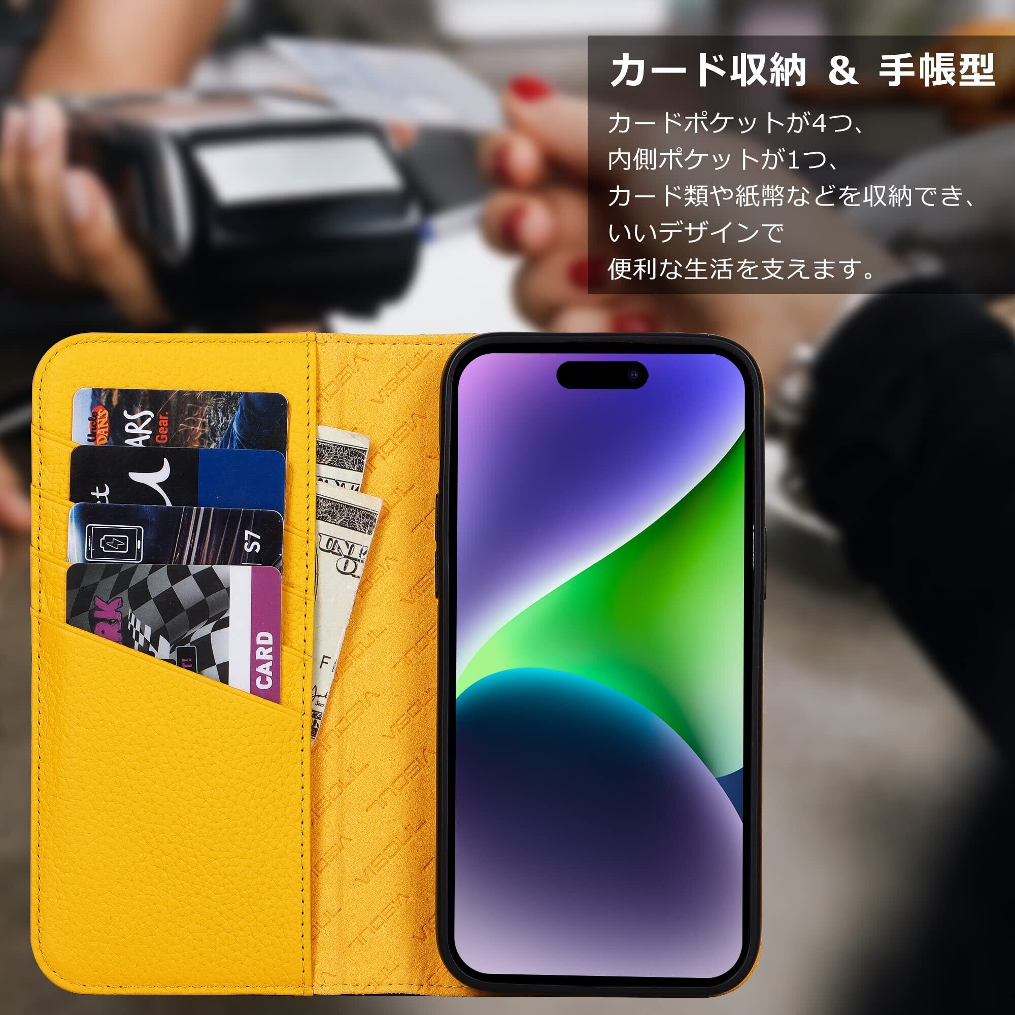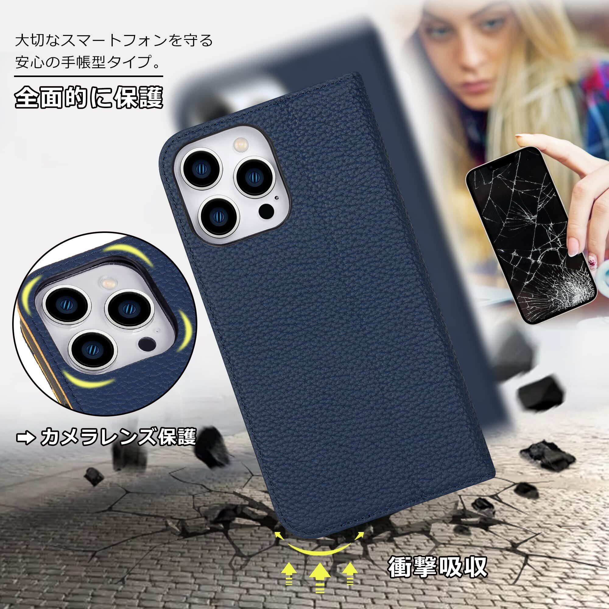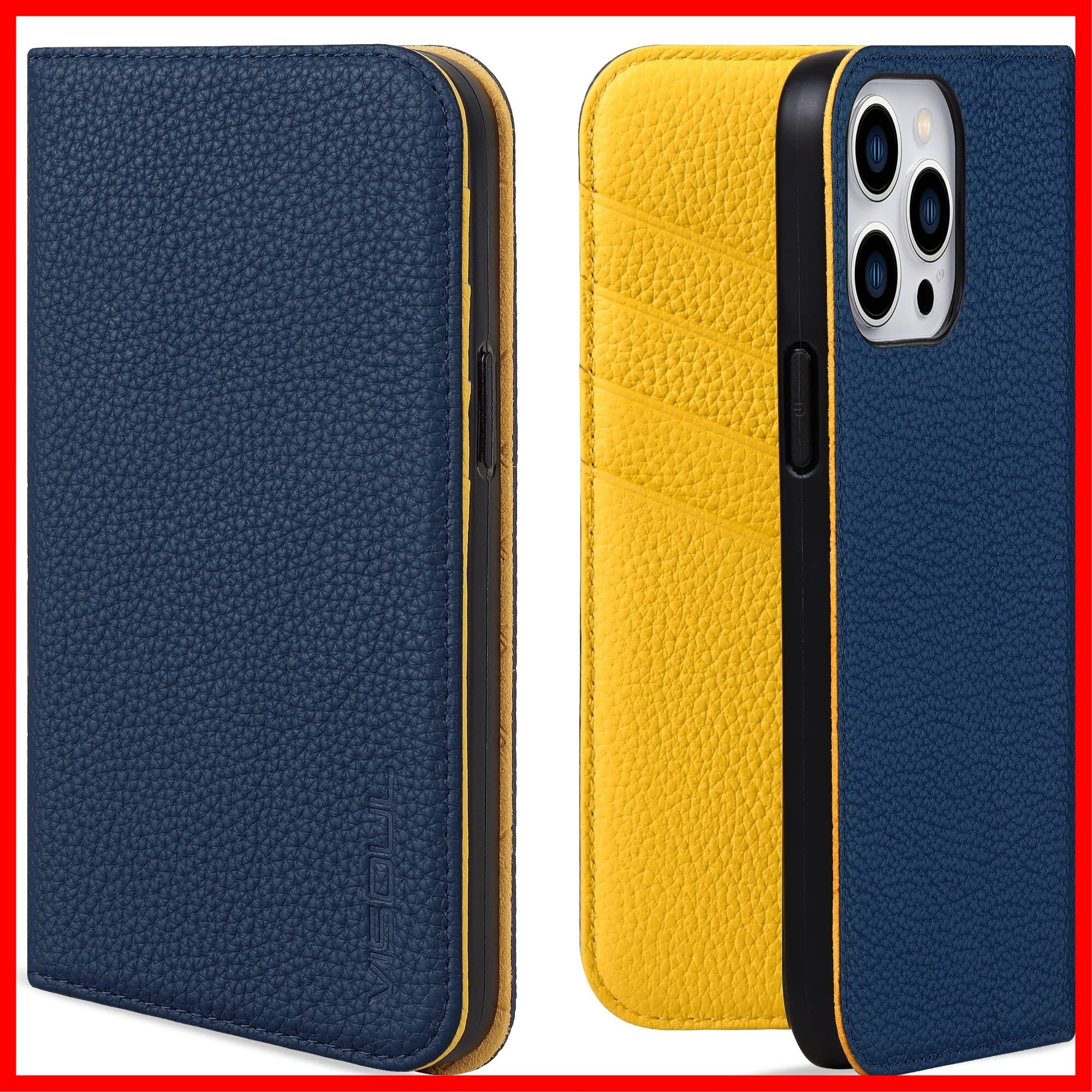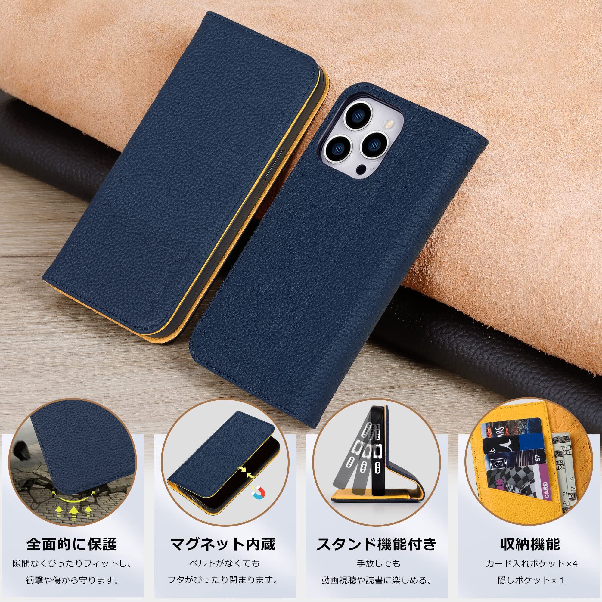 VISOUL iphone14 ProMax ケース 手帳型 本革 レザー スタンド機能付き手帳型ケース カードポケット 携帯ケース 全面保護 マグネット内蔵 柔軟なTPU素材 スマホケース アイホン14 ProMax 対応 6.7インチ アイフォン14 ProMax ネイビー レモン | hananoki