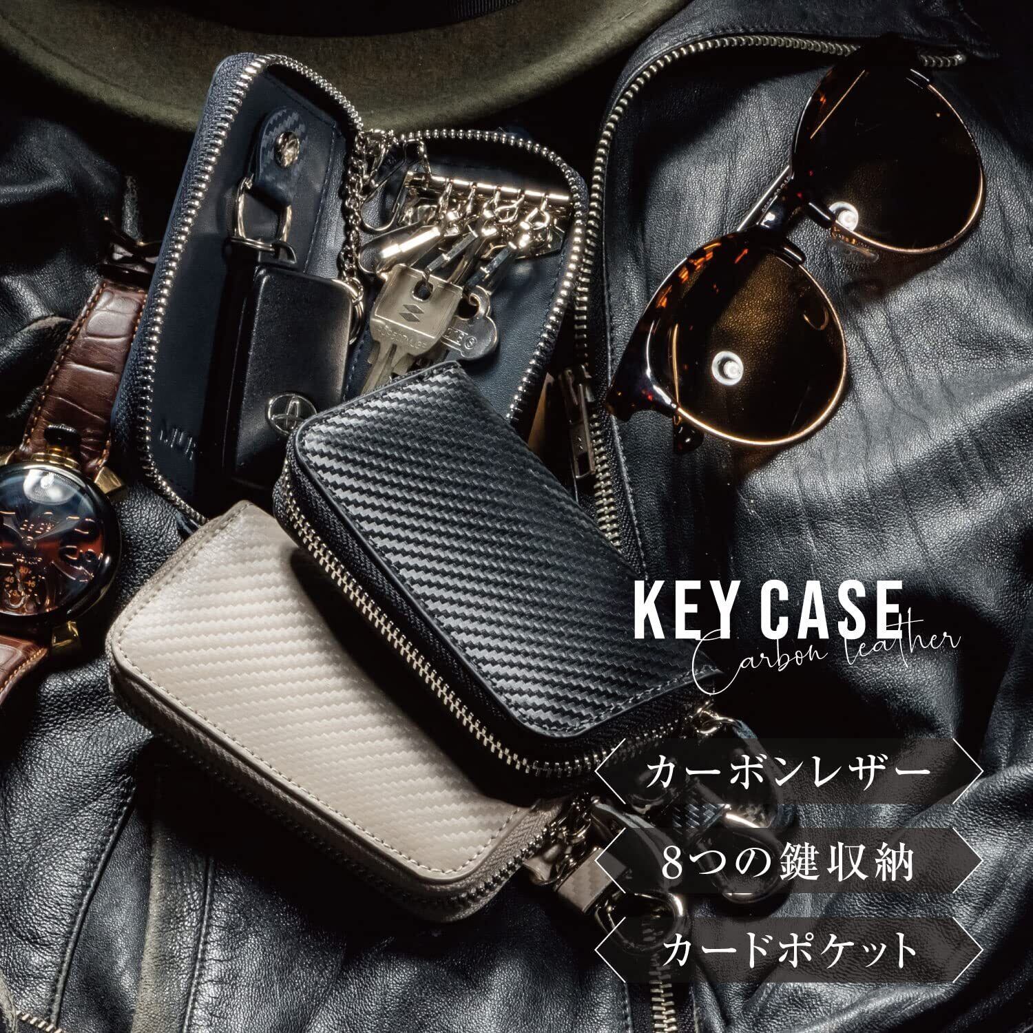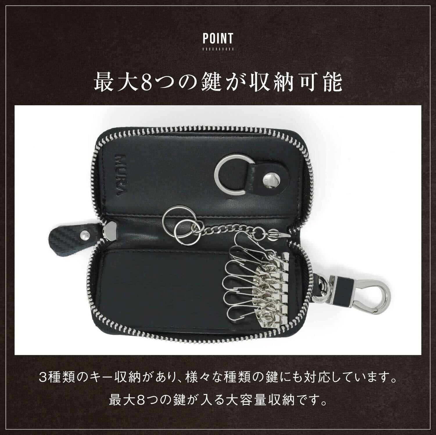 [ムラ] キーケース メンズ 本革 カーボンレザー カラピナ付き 6連リング 収納