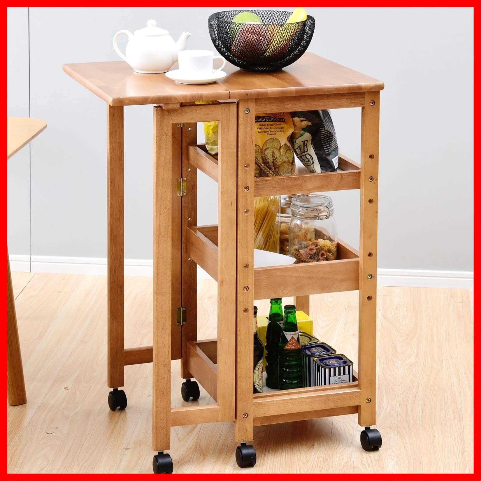 山善(YAMAZEN) ワゴン キャスター付き 3段 (折りたたみ) キッチン 作業台 幅45×奥行40/62×高さ85㎝ 棚板高さ調節 バタフライ テーブル 調味料ラック 組立品 天然木 ミッドブラウン ABW-8560(MBR) | hananoki