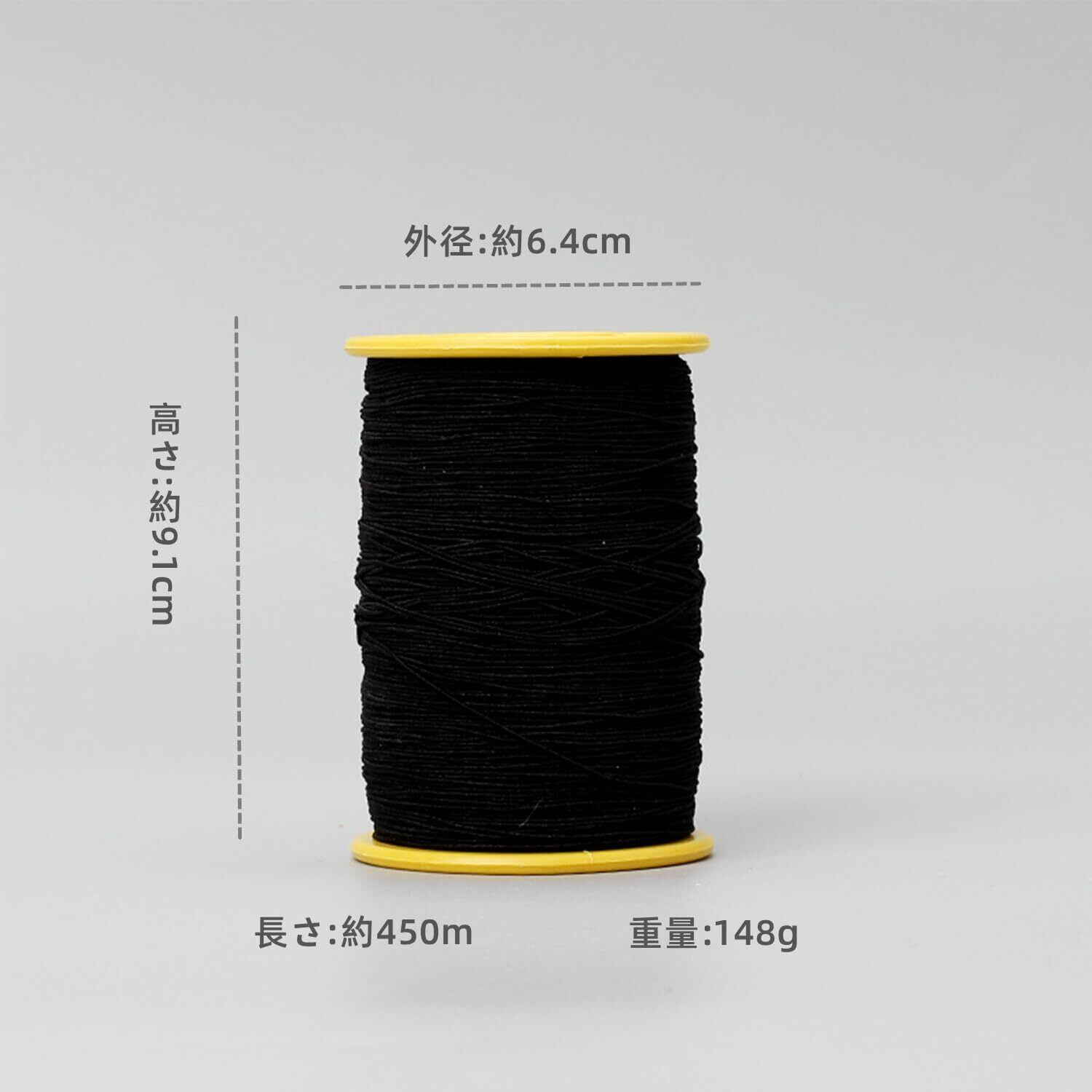 Windman ゴム糸 ミシン ゴム糸 細 0.5mm ゴムカタン糸 手縫い ゴムひも 丸ゴム たっぷり450m巻 手芸ゴム 裁縫 (黒)