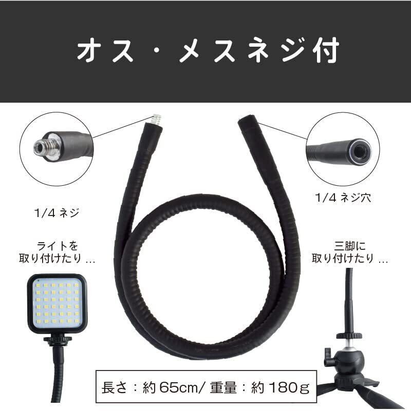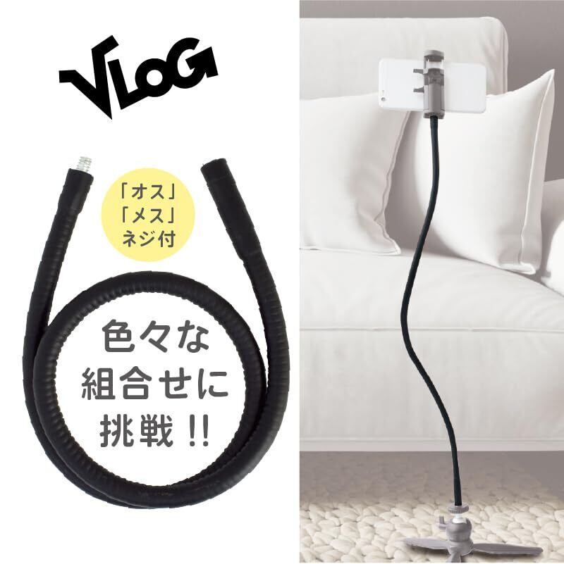 エツミ 撮影 ライト フレキシブル VLOG マルチ スネークスティック 50cm【 オス メス ネジ付き】 ブラック VE-2300