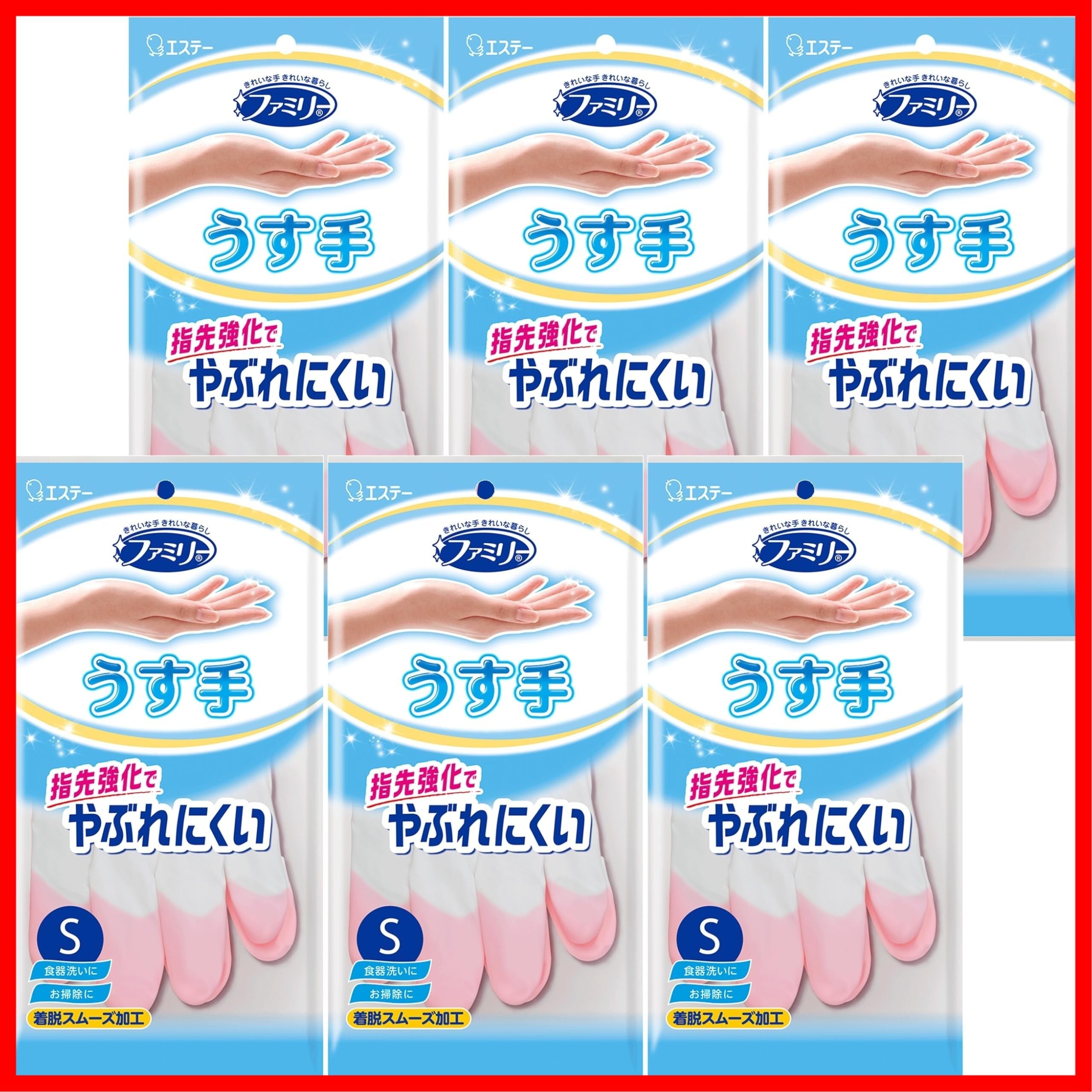 ファミリー [まとめ買い] ビニール手袋 うす手 指先強化 Sサイズ ピンク×6個 キッチン 食器洗い 掃除 洗濯 ビニール 手袋