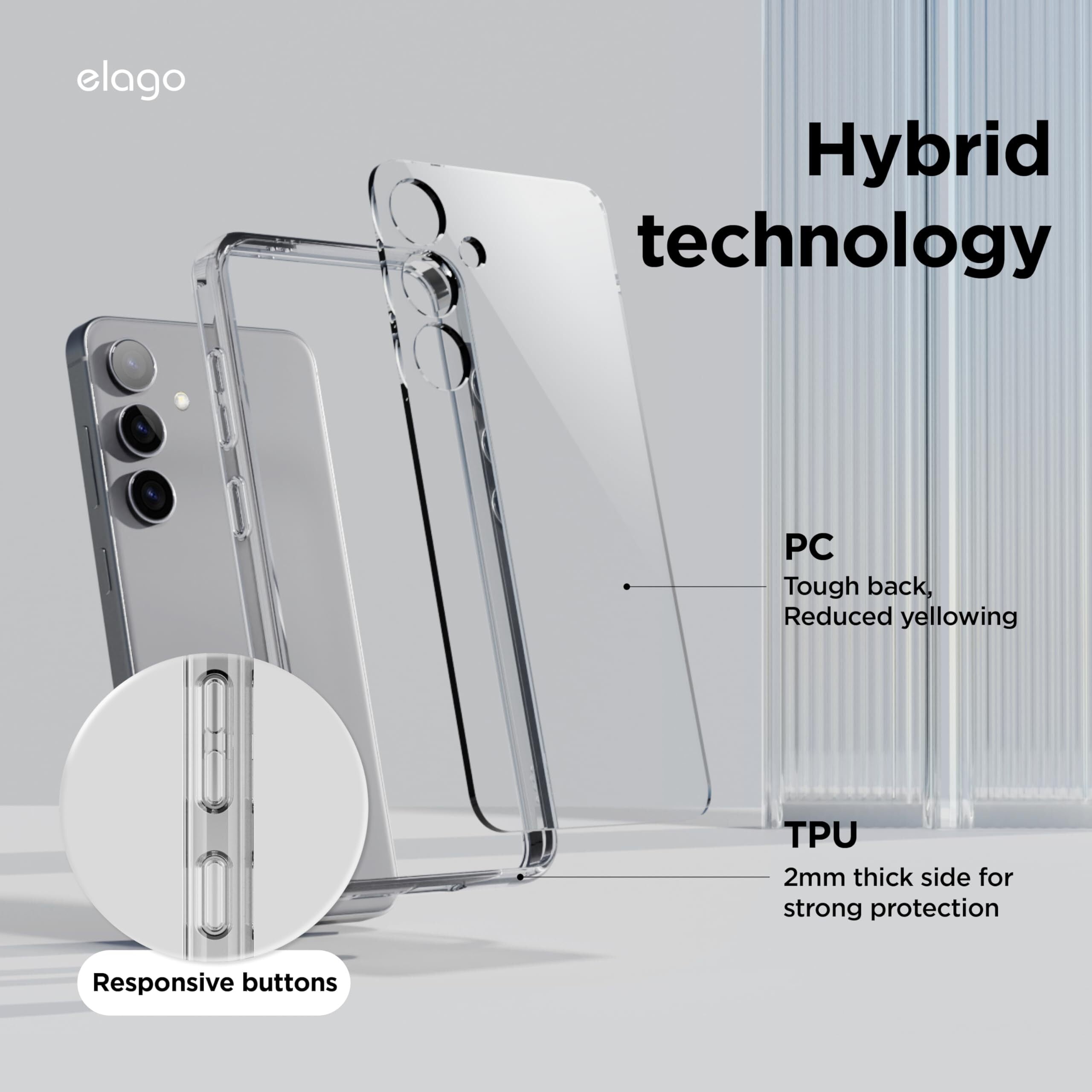 【elago】 Galaxy S24 対応 ケース 耐衝撃 クリア 背面 ハード PC 側面 ソフト TPU スマホケース 薄型 透明 スリム クリアケース [ Samsung GalaxyS24 サムスン ギャラクシー S24 対応 携帯ケース ] HYBRID CASE クリア