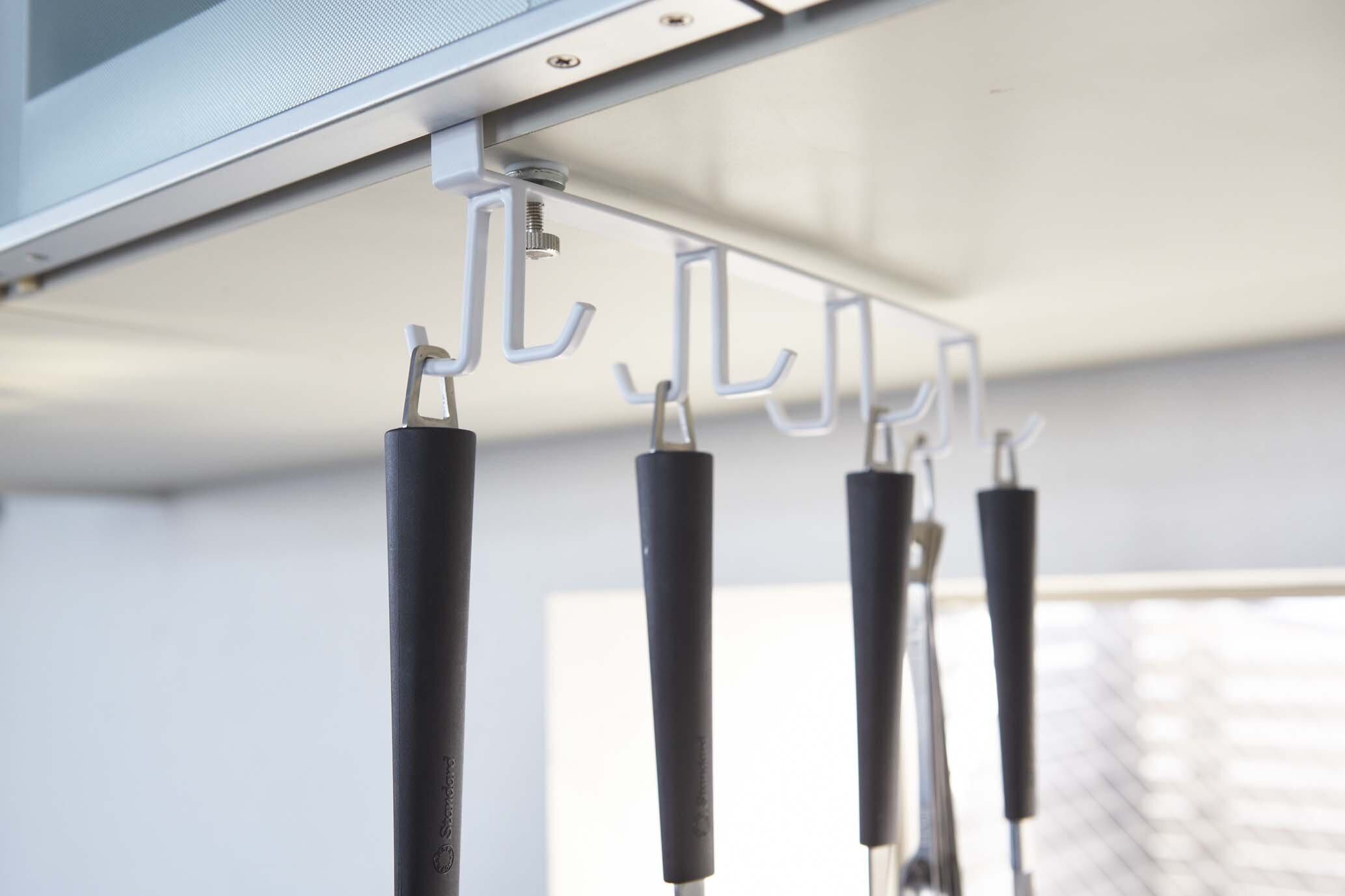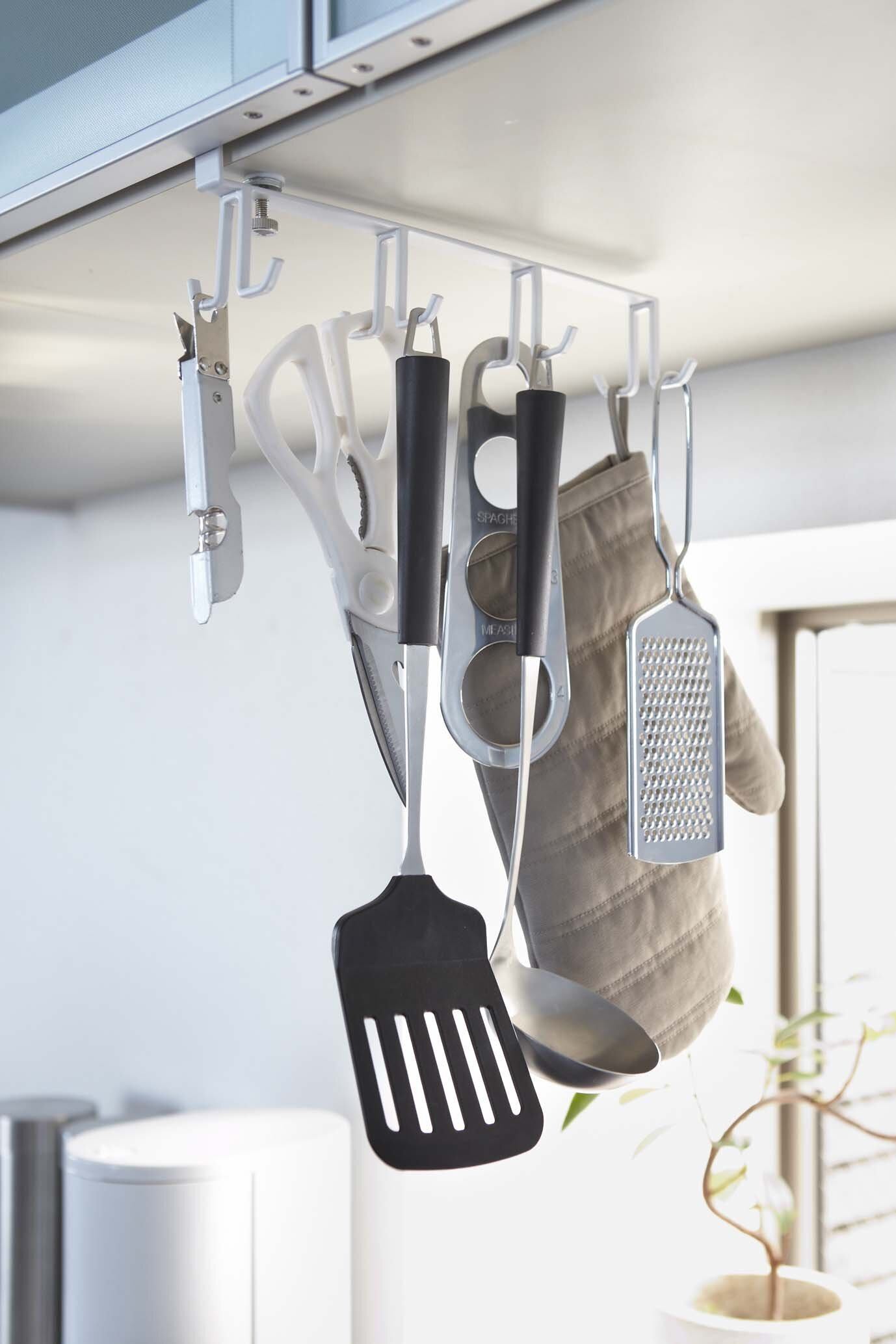 吊り戸棚に簡単取り付けのキッチンツールフック。ネジでしっかり固定!