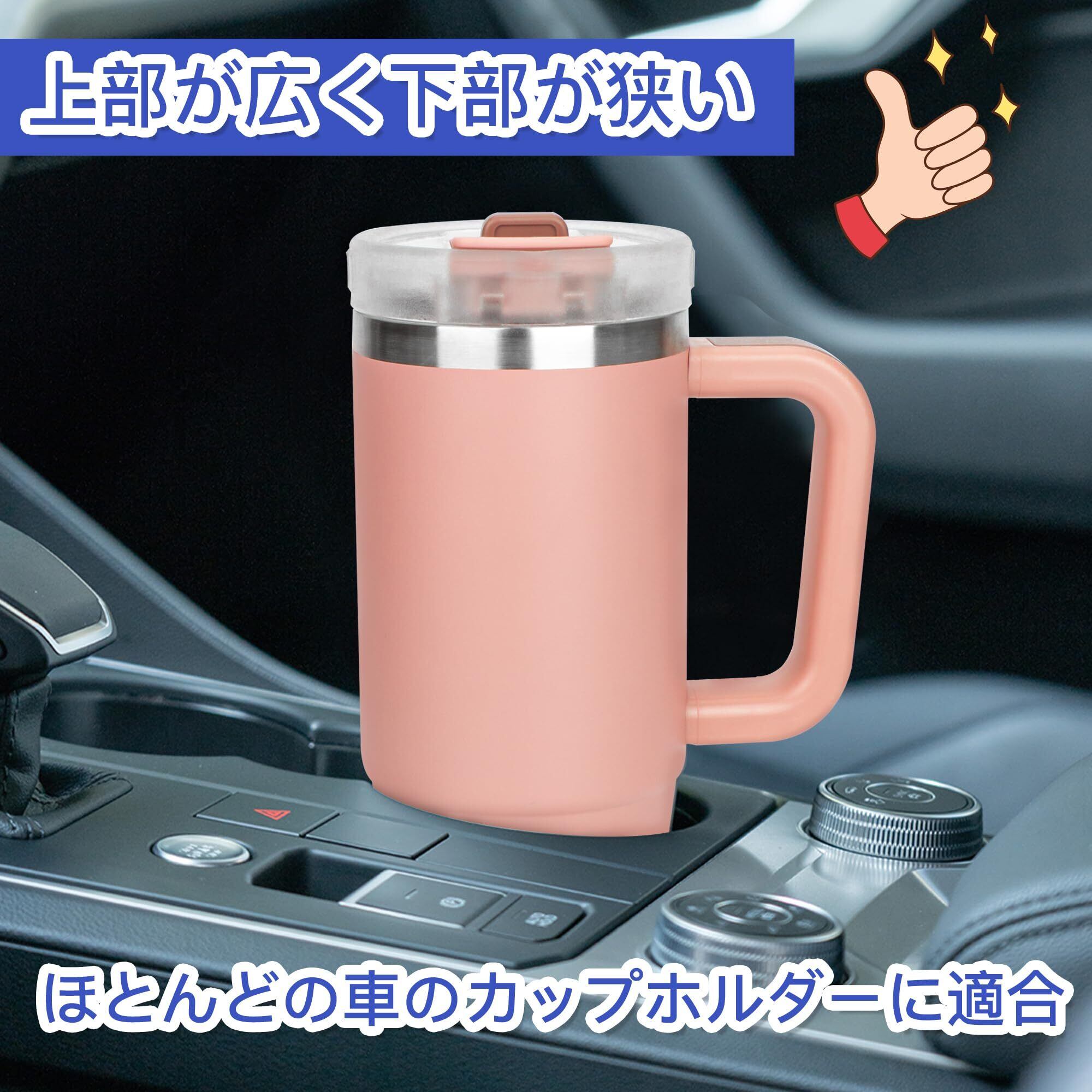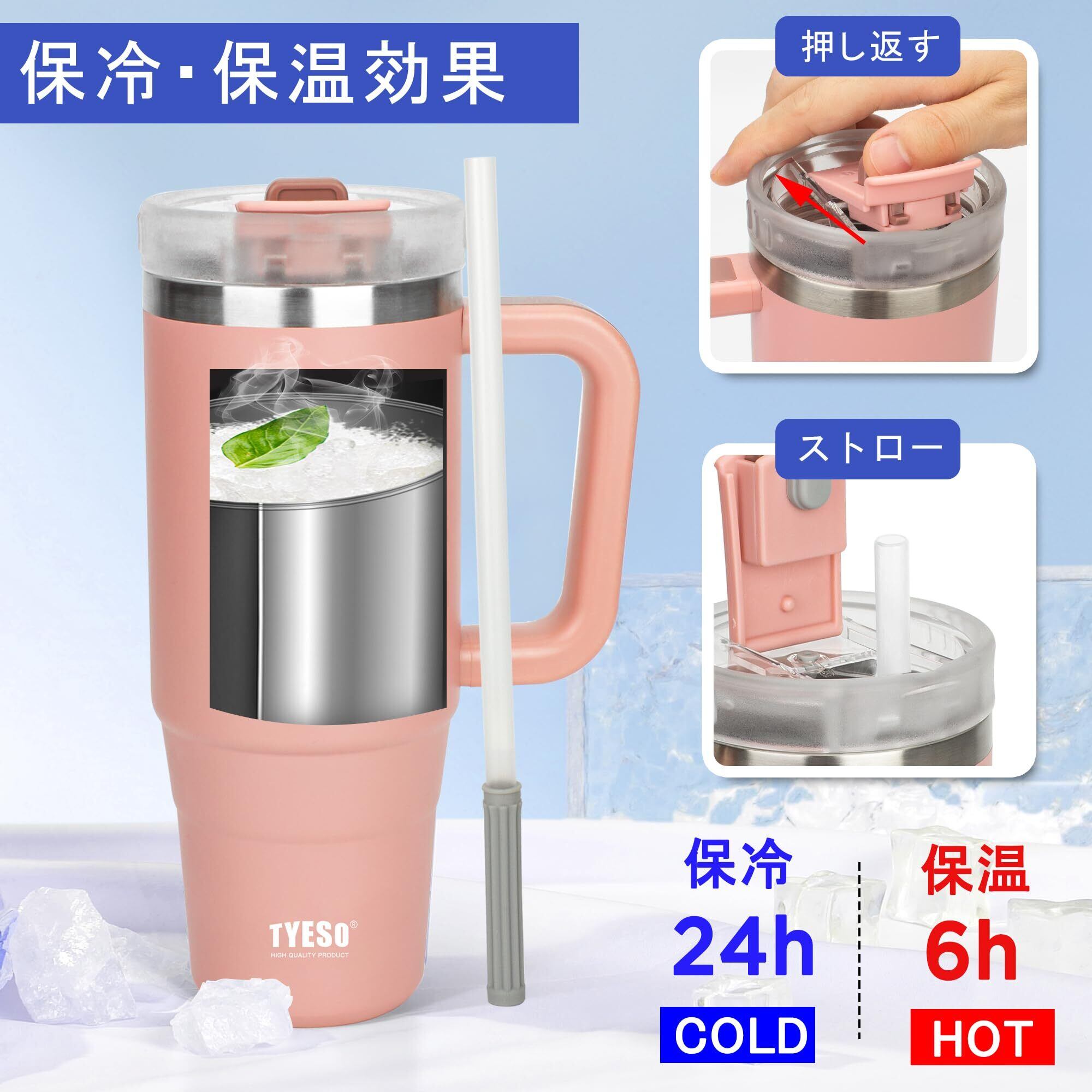 TYESO タンブラー 0.9L 水筒 保冷 ステンレスボトル ウォーターボトル ストロー 取っ手付き ジョッキ アウトドア 真空断熱 二重構造 広口 大容量 直飲 女の子 男の子 900ml 桃色 | hananoki
