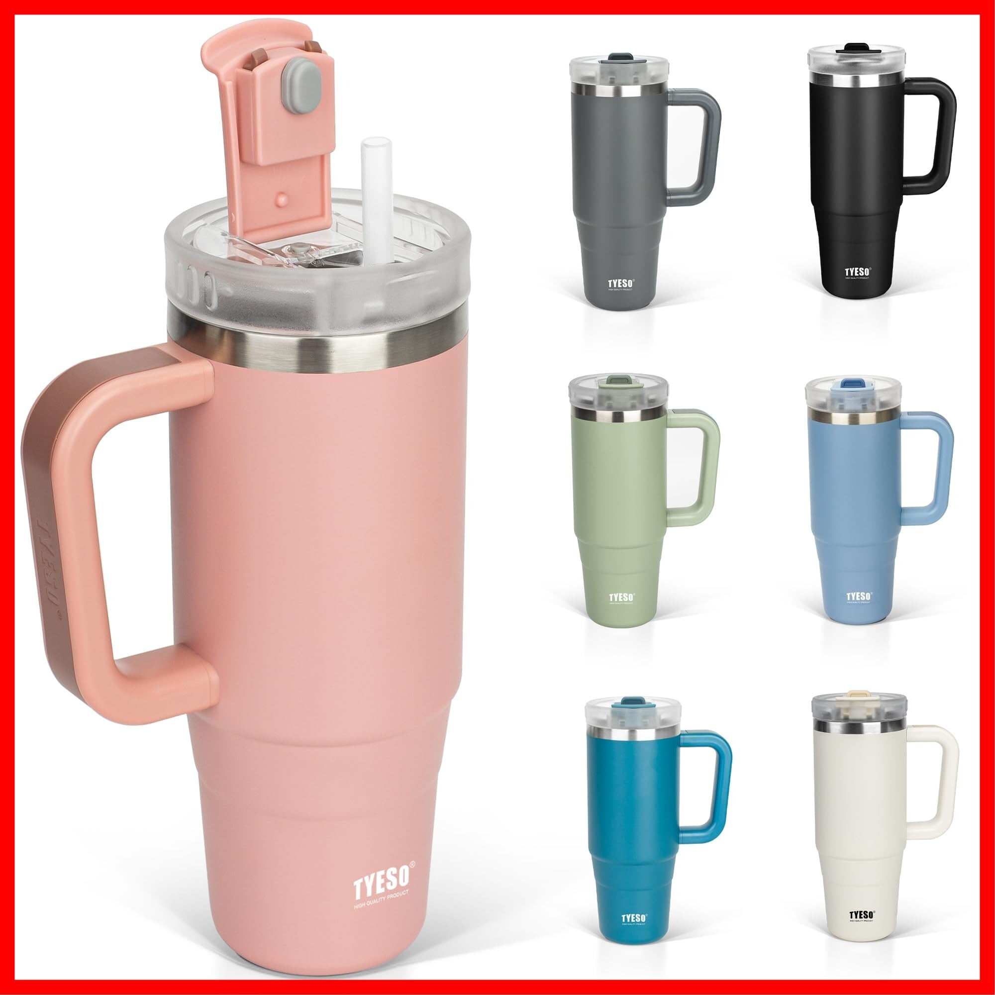 TYESO タンブラー 0.9L 水筒 保冷 ステンレスボトル ウォーターボトル ストロー 取っ手付き ジョッキ アウトドア 真空断熱 二重構造 広口 大容量 直飲 女の子 男の子 900ml 桃色
