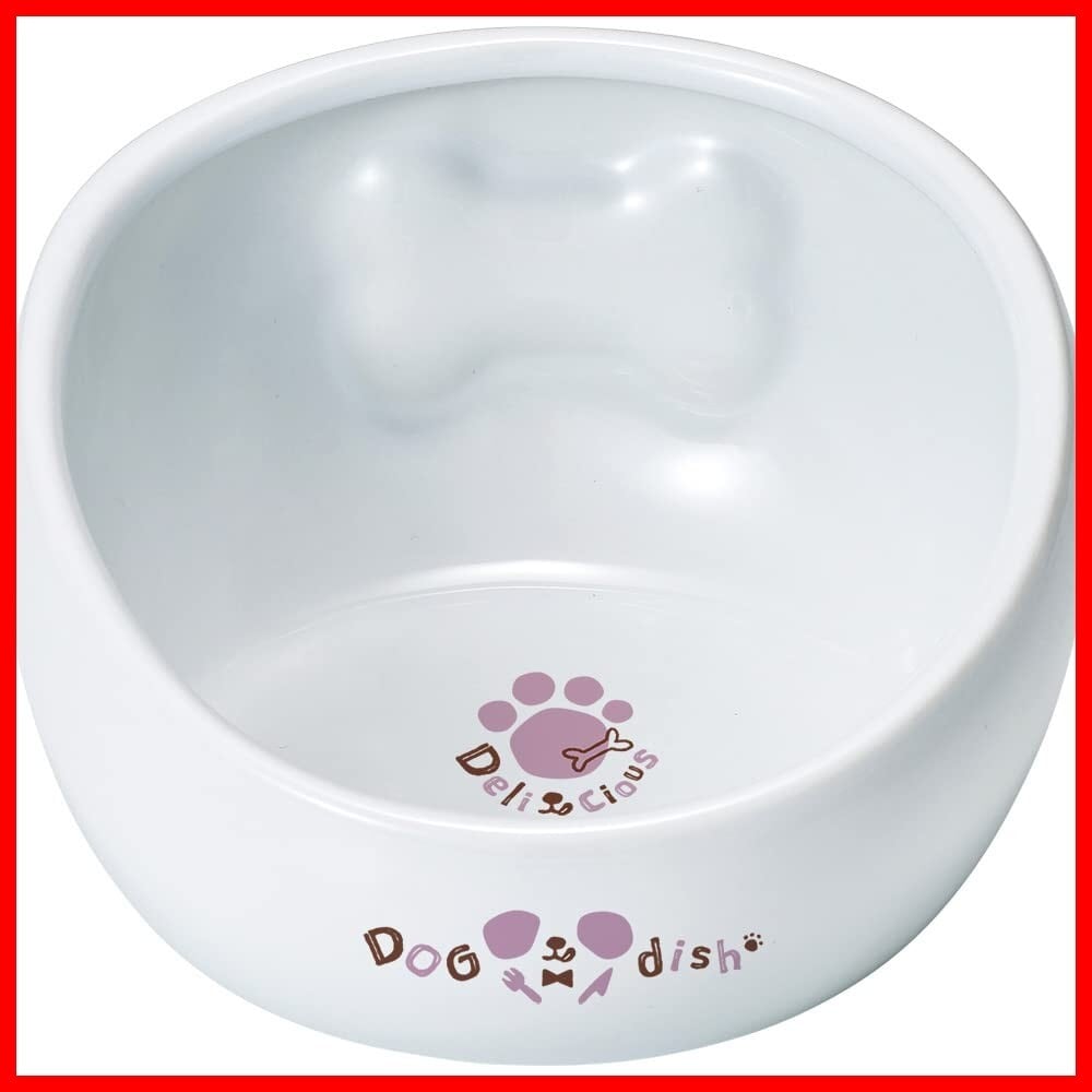 2つの返し構造で食べる時にこぼれにくい形状の犬用陶製食器です。外側の骨型の凹みで食器が持ちやすくなっています。