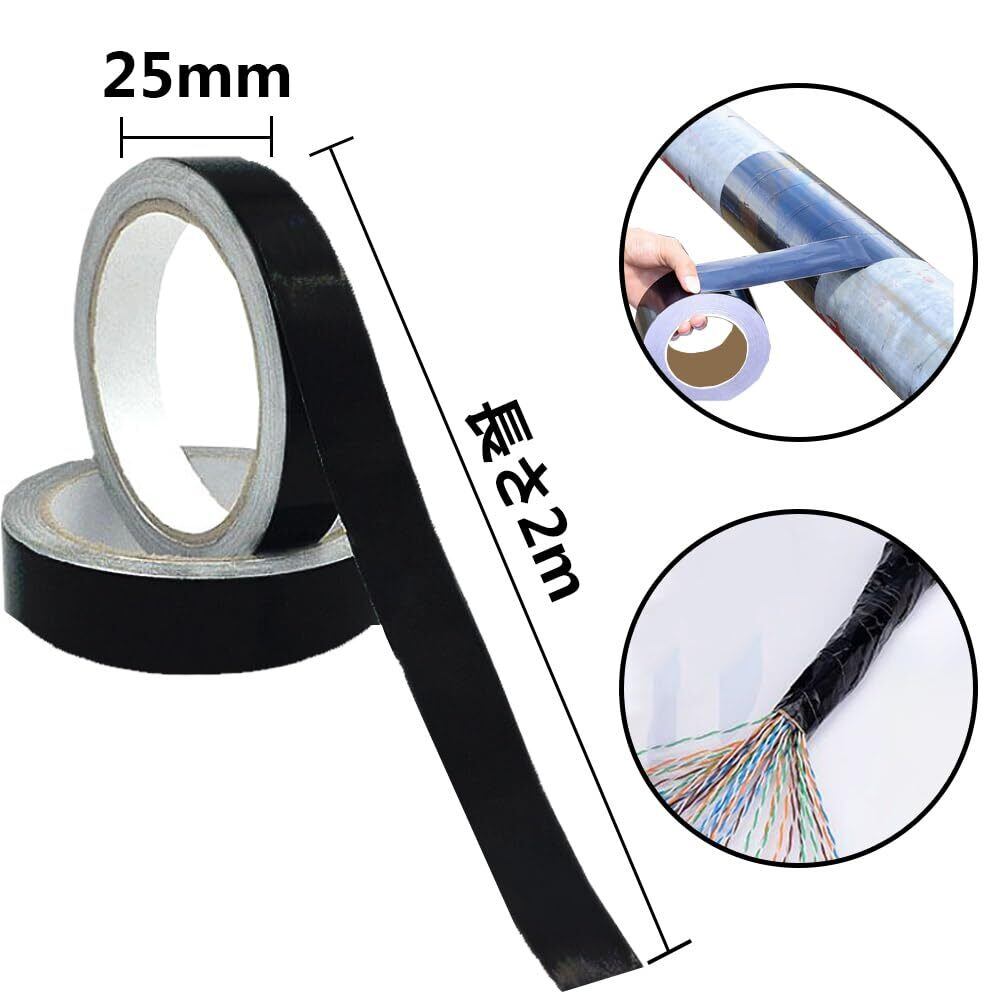 アルミ箔テープ アルミテープ 静電気対策 電磁波のシールド 水漏補修 配管修理 耐熱 防水 防火 多機能 (黒 幅25mm 長さ20m 厚さ0.05mm)