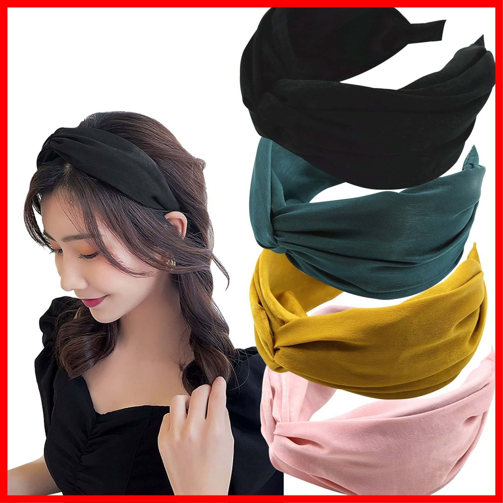サムコス 4色セット ヘアバンド レディース カチューシャ 可愛い ヘアアクセサリー 髪飾り 滑り止め 幅広 ヘアターバン カジュアル ヘッドバンド お風呂/ヨガ/洗顔用に