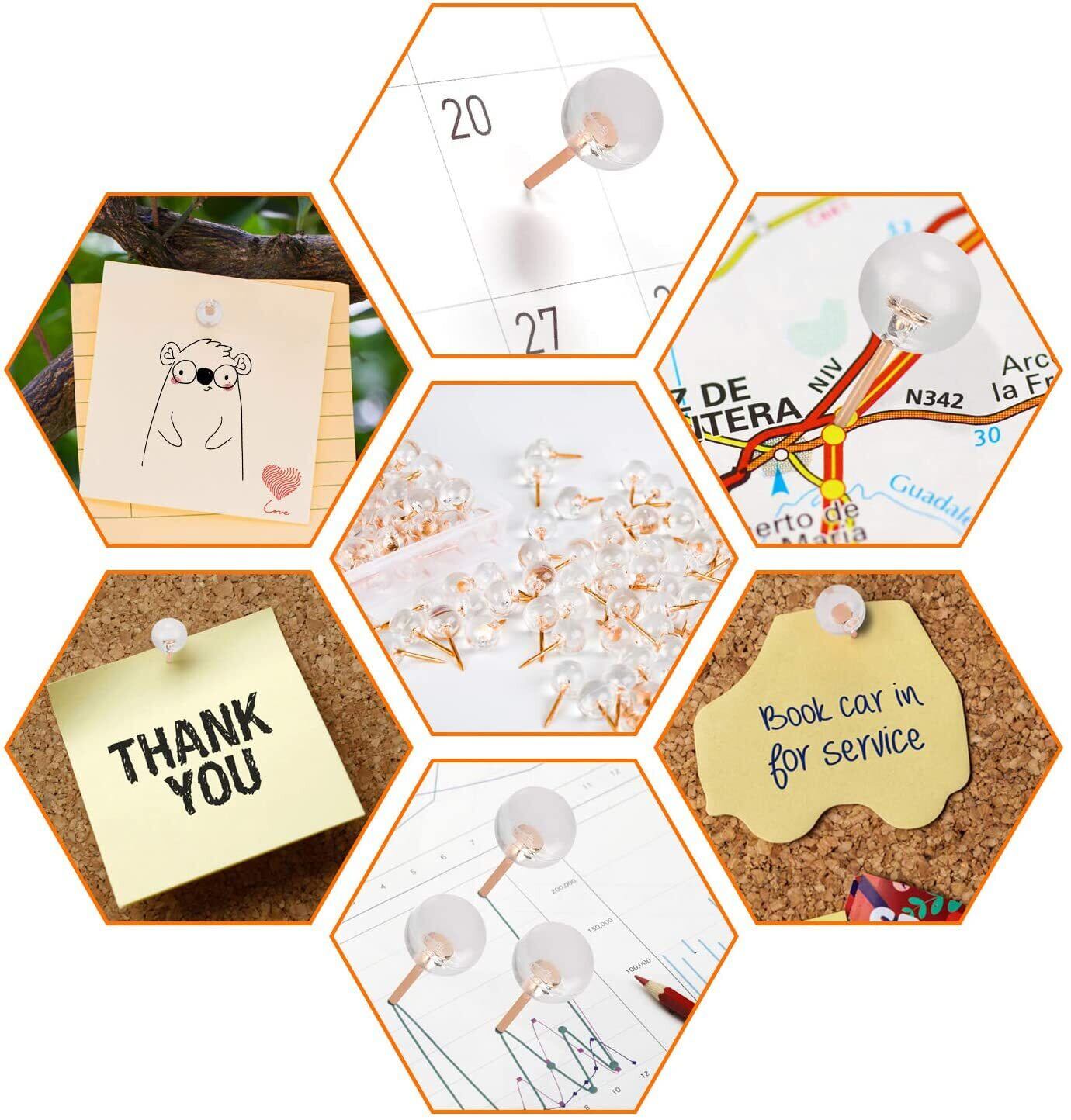 【クリア画びょう】透明色の玉とローズゴールドスチールの針の組み合わせで、可愛くておしゃれな押しピンです。自宅でもオフィスでも使えます。