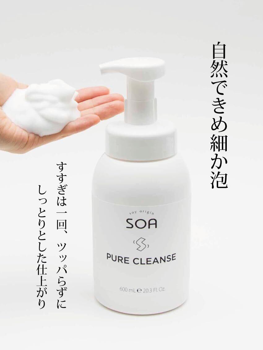 ソア(SOA) ピュアクレンズ 泡 ポンプ ボディーソープ 無添加 保湿 敏感肌用 天然由来成分 イランイラン ローズマリー 天然香料 (本体 600ml)
