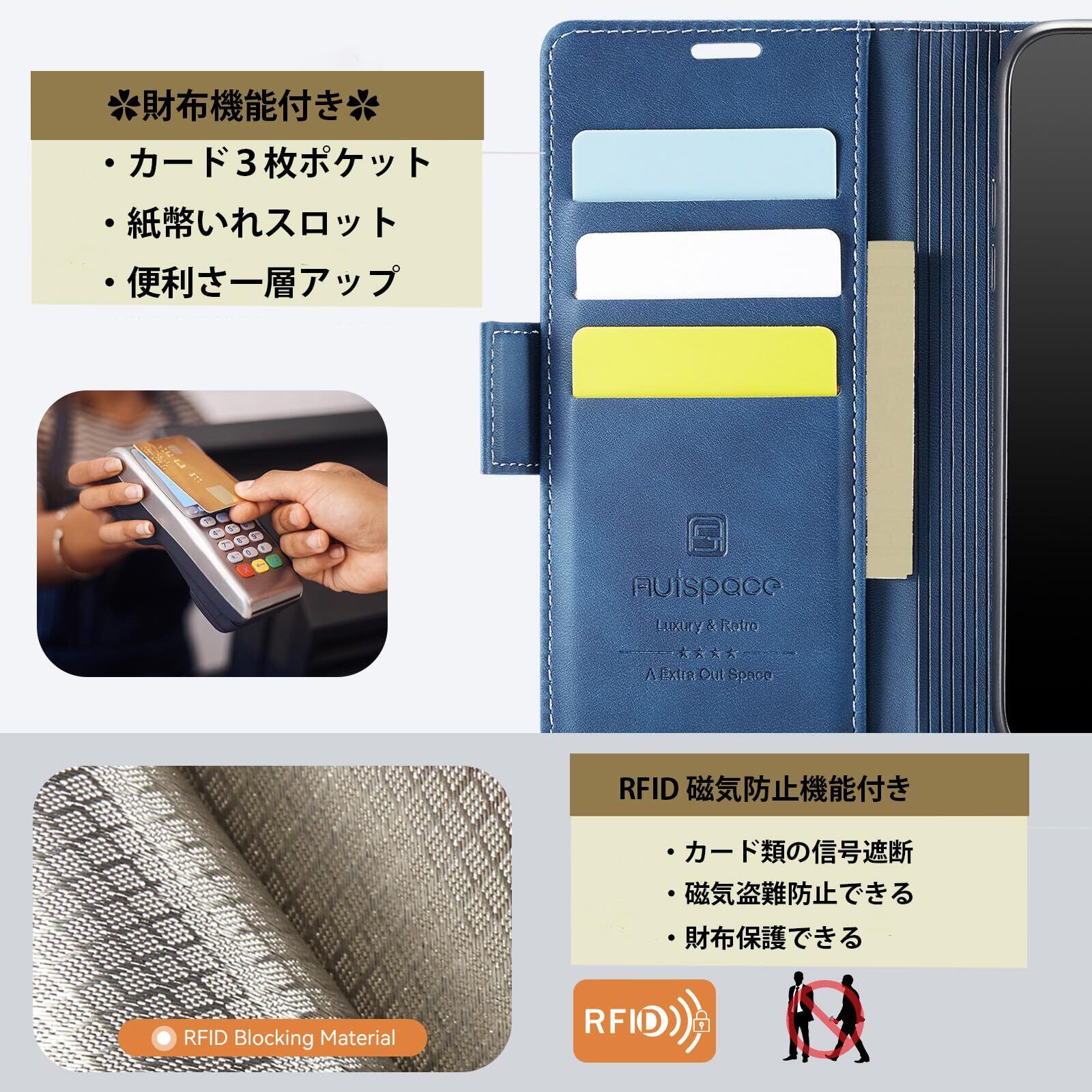 【こだわりの生地】 厳選のこだわりのPUレザーを使用、手に馴染みやすく、季節を選ばない質感。お好きな色を選べ、色合いを楽しみながら長年使用できる素材で。着脱しやすく、内側は柔らかいマットなTPU素材を採用して、高級感を持ちながらスマホを全面保護している手帳型ケースです。傷やホコリを防ぐこともでき滑り止めと指紋防止の効果を発揮します。