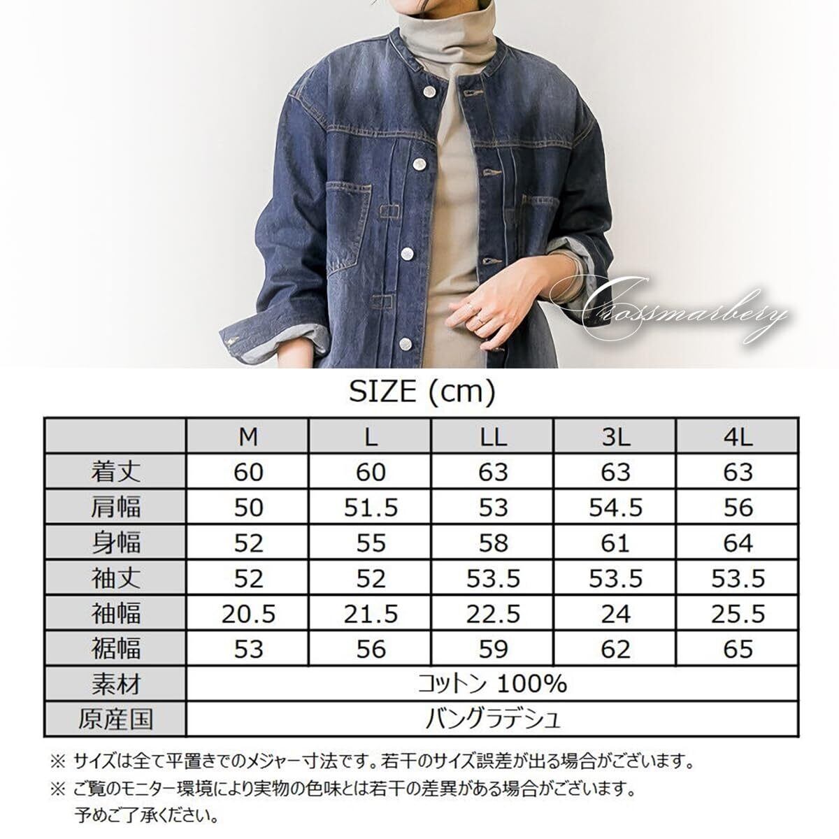 [Mサイズ]着丈:60cm、肩幅:50cm、身幅:52cm、袖丈:52cm、袖幅:20.5cm、裾幅:53cm[Lサイズ]着丈:60cm、肩幅:51.5cm、身幅:55cm、袖丈:52cm、袖幅:21.5cm、裾幅:56cm[LLサイズ]着丈:63cm、肩幅:53cm、身幅:58cm、袖丈:53.5cm、袖幅:22.5cm、裾幅:59cm