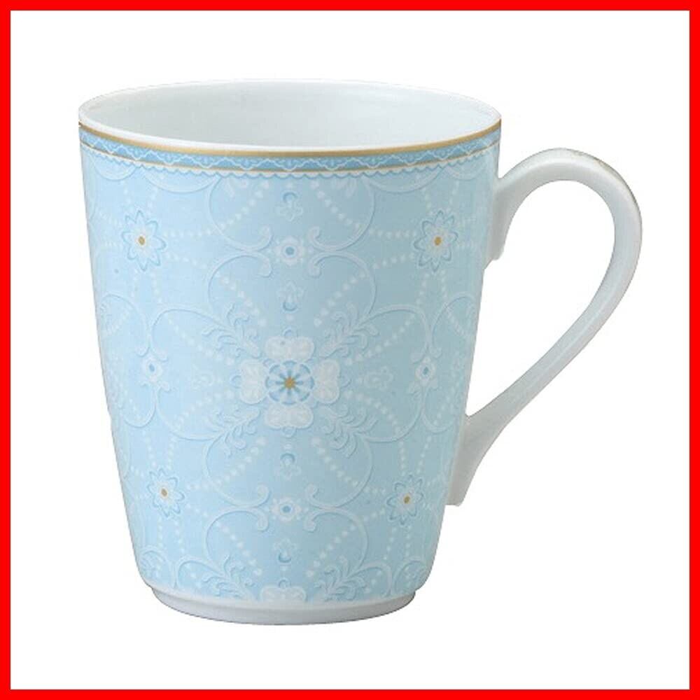 やさしく上品なブルーの地色に花をモチーフにしたマグカップ。