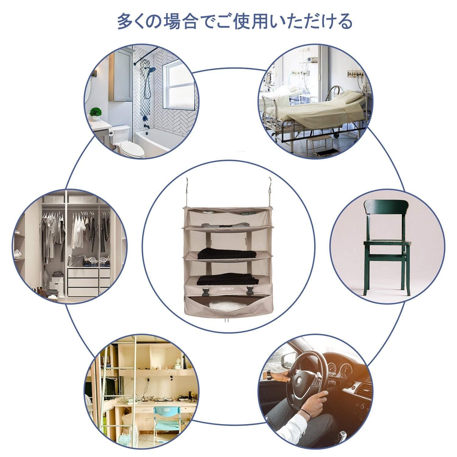 TABITORA(タビトラ)収納ボックス 吊り下げ インナーバッグ 衣類ラック 収納 旅行 出張 クローゼット 省スペース 大容量 衣装ケース 4段 オーガナイザー ベージュ XL-A