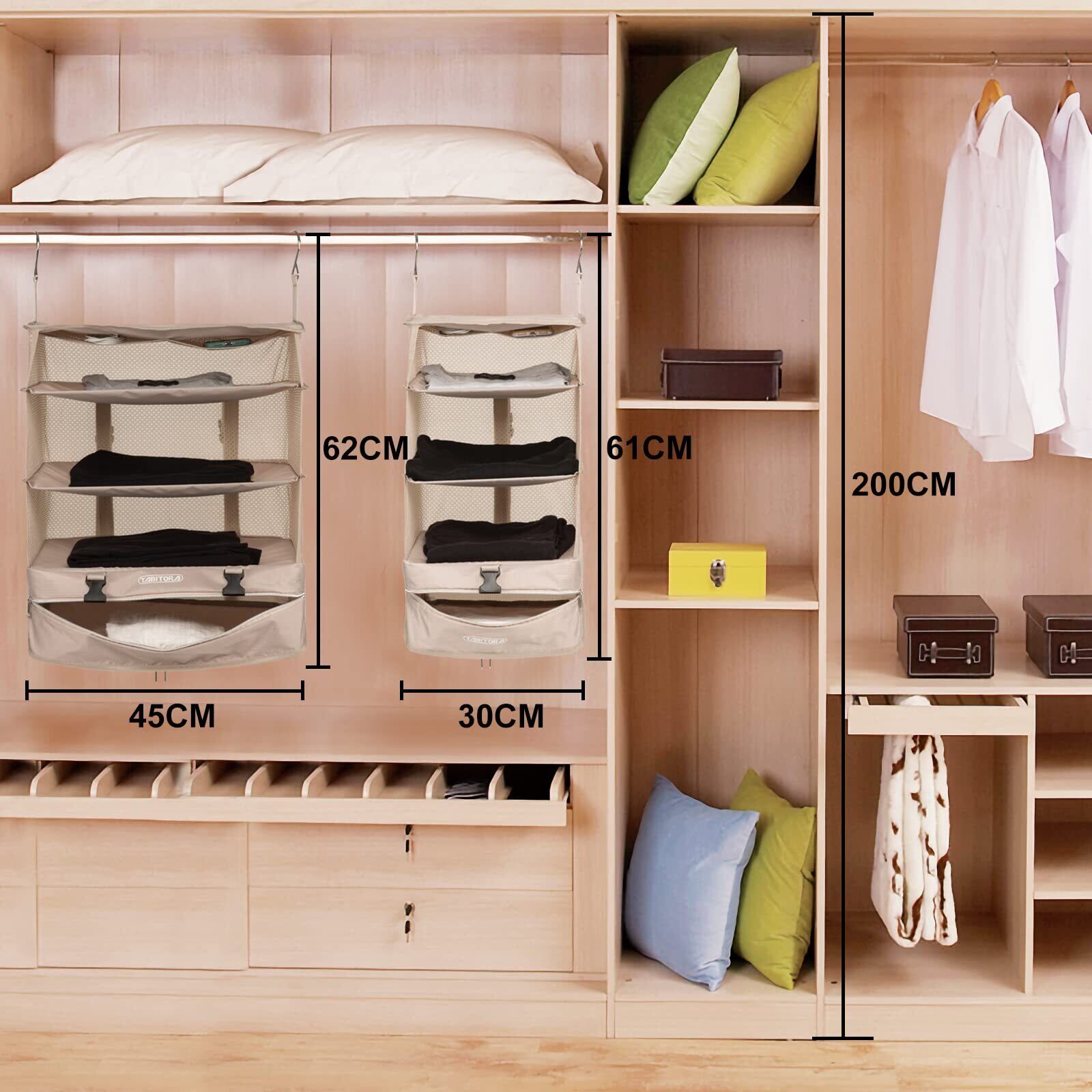 TABITORA(タビトラ)収納ボックス 吊り下げ インナーバッグ 衣類ラック 収納 旅行 出張 クローゼット 省スペース 大容量 衣装ケース 4段 オーガナイザー ベージュ XL-A | hananoki
