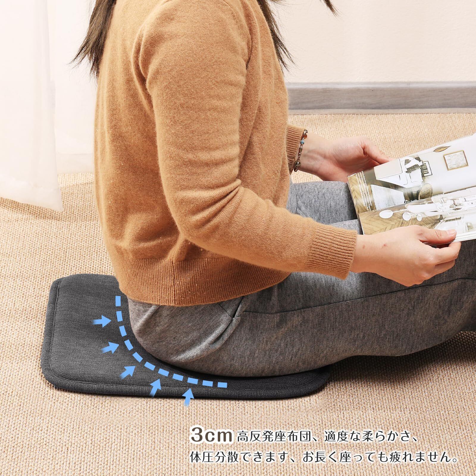 【お尻に優しい高反発ウレタン】高反発ウレタンフォームが適度な硬さと弾力を提供し、長時間座ってもお尻や腰への負担を軽減します。3cm厚みがあるため、椅子との直接接触が減り、お尻や腰への負担が軽減されます。また、チェアクッションとして机との高さもぴったり合いやすくなります。