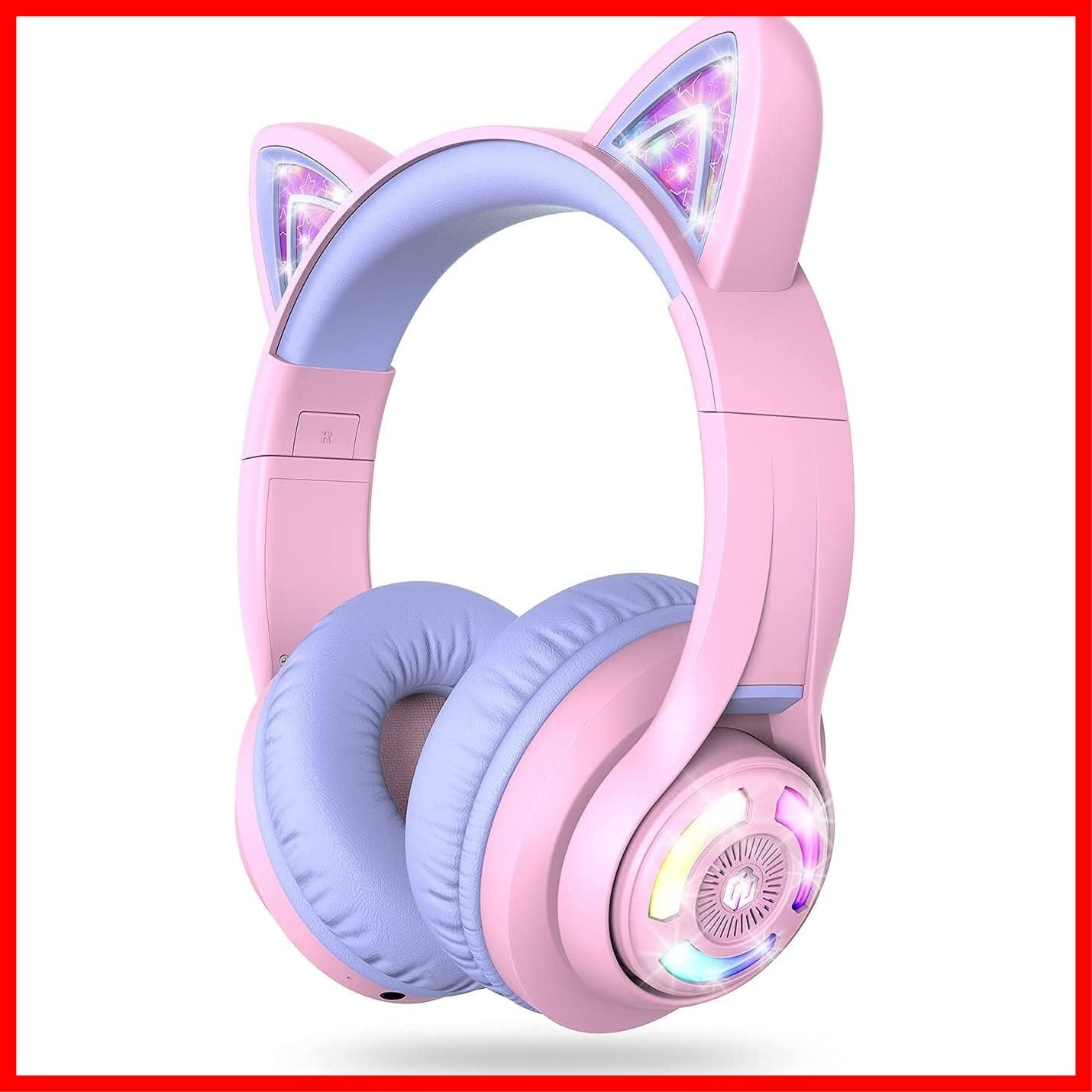 iClever 子供用ヘッドフォン Bluetoothヘッドフォン 猫耳LEDライトアップ ワイヤレス キッズヘッドフォン 音量制限付き(74/85 dBA) 45Hプレイタイム マイク付き 学校/タブレット/PC用 BTH13 パープル